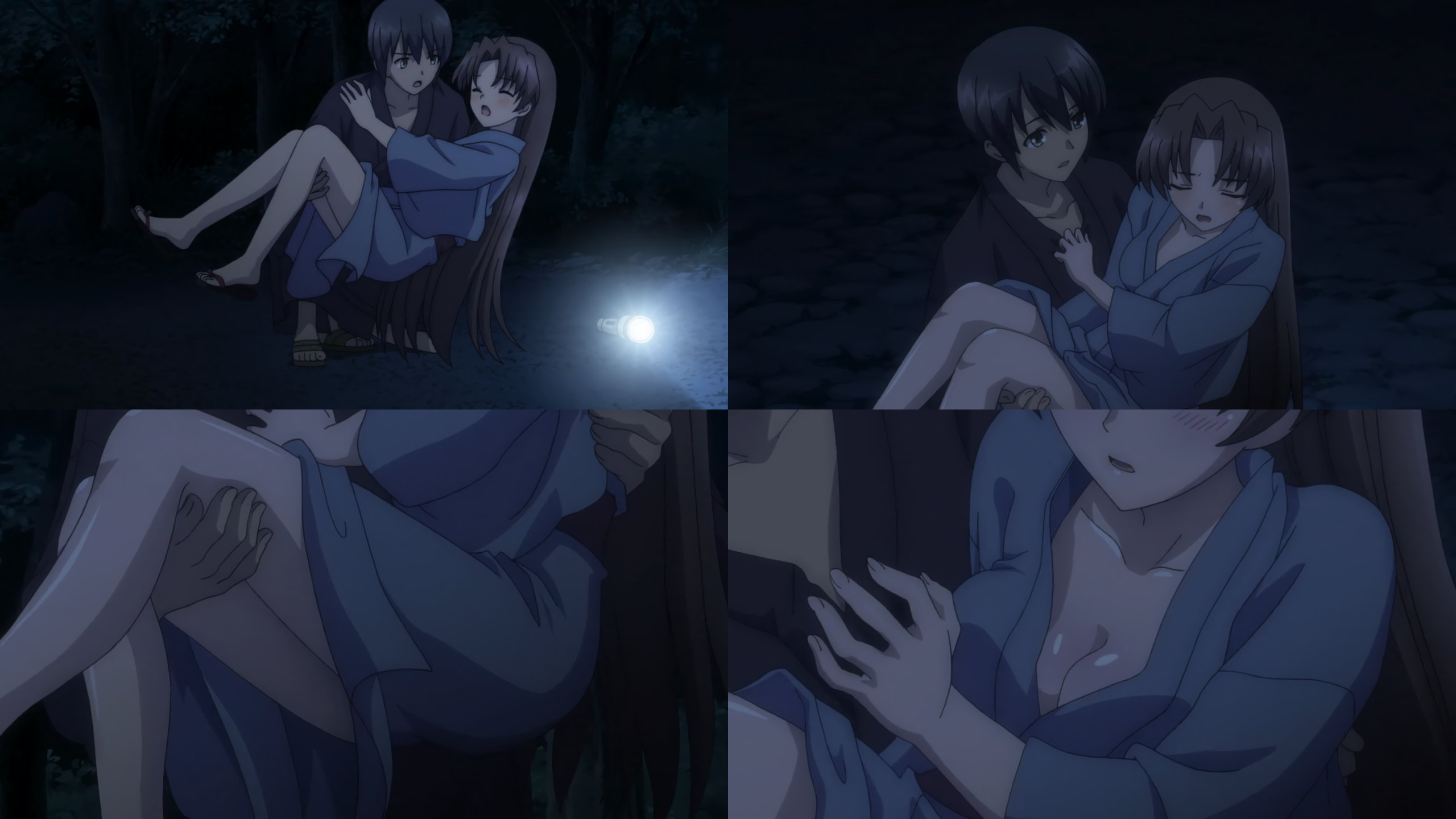 浴衣が開けて胸元全開・生脚露出するヒカル。