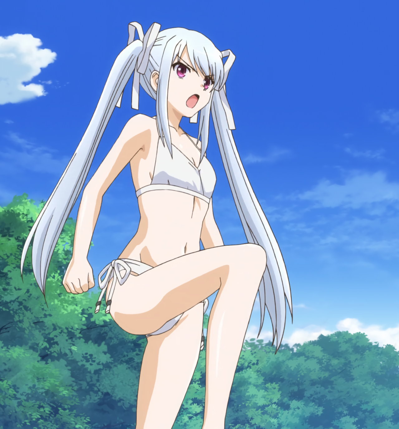 ビキニ水着姿の貧乳六女・氷柱。