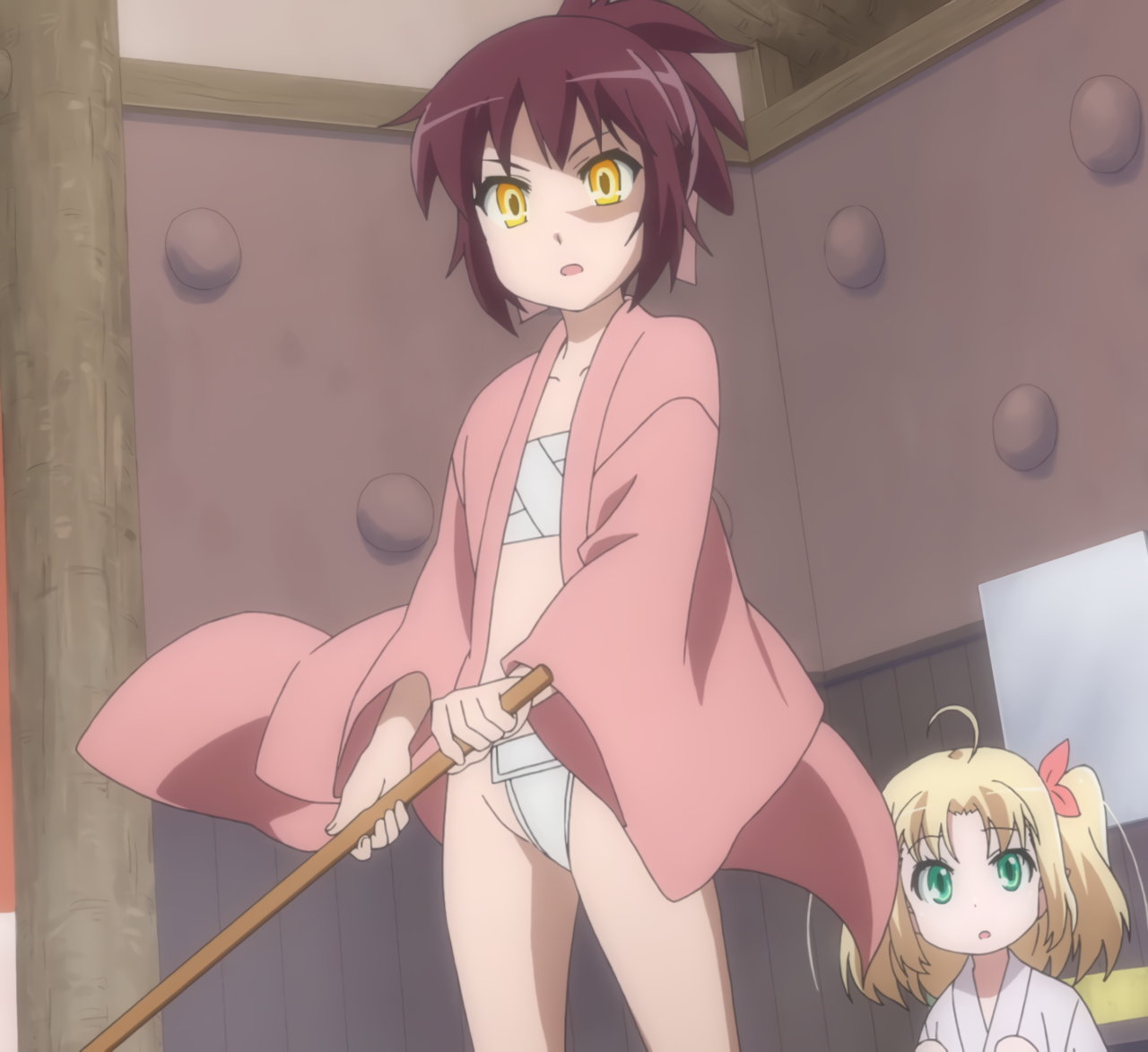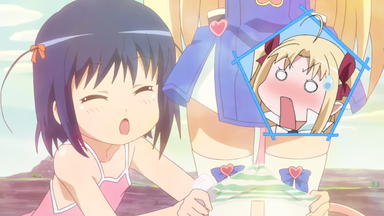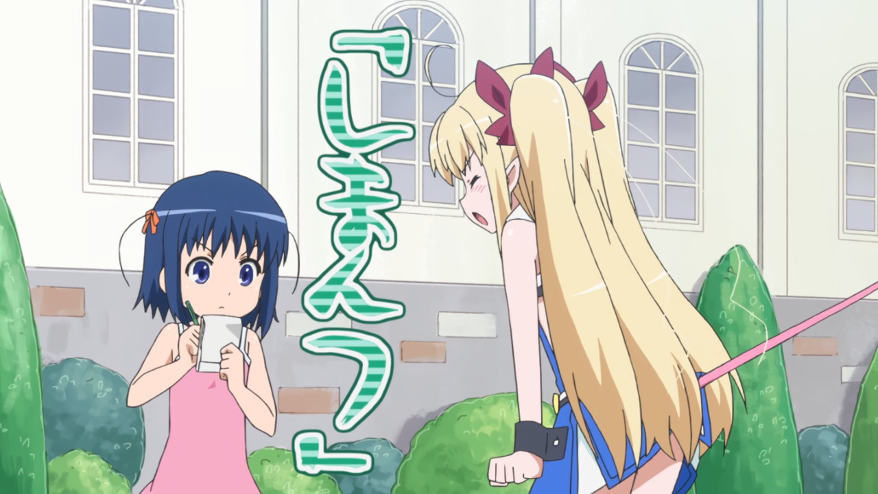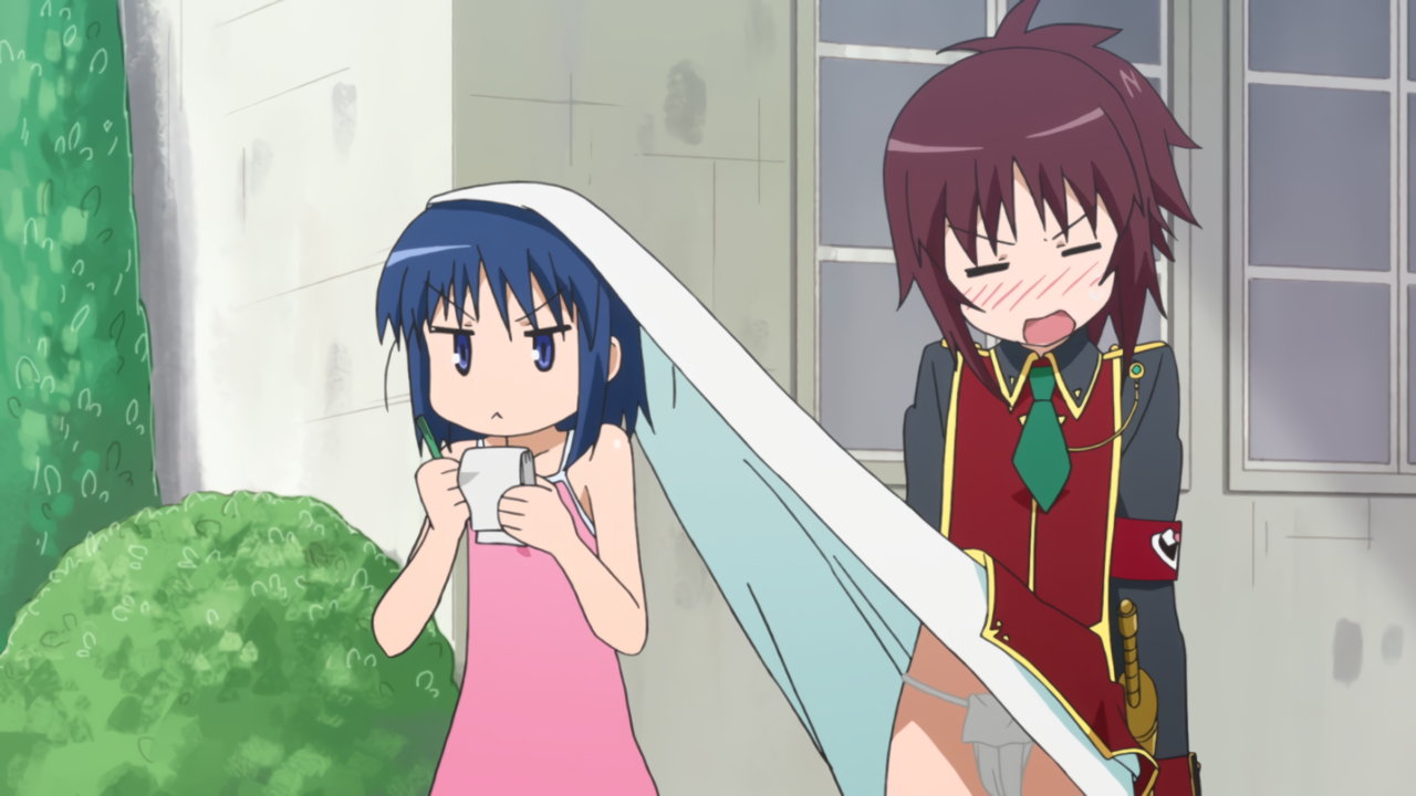 明日葉にスカート捲りされ、パンチラするアスタロッテ。
