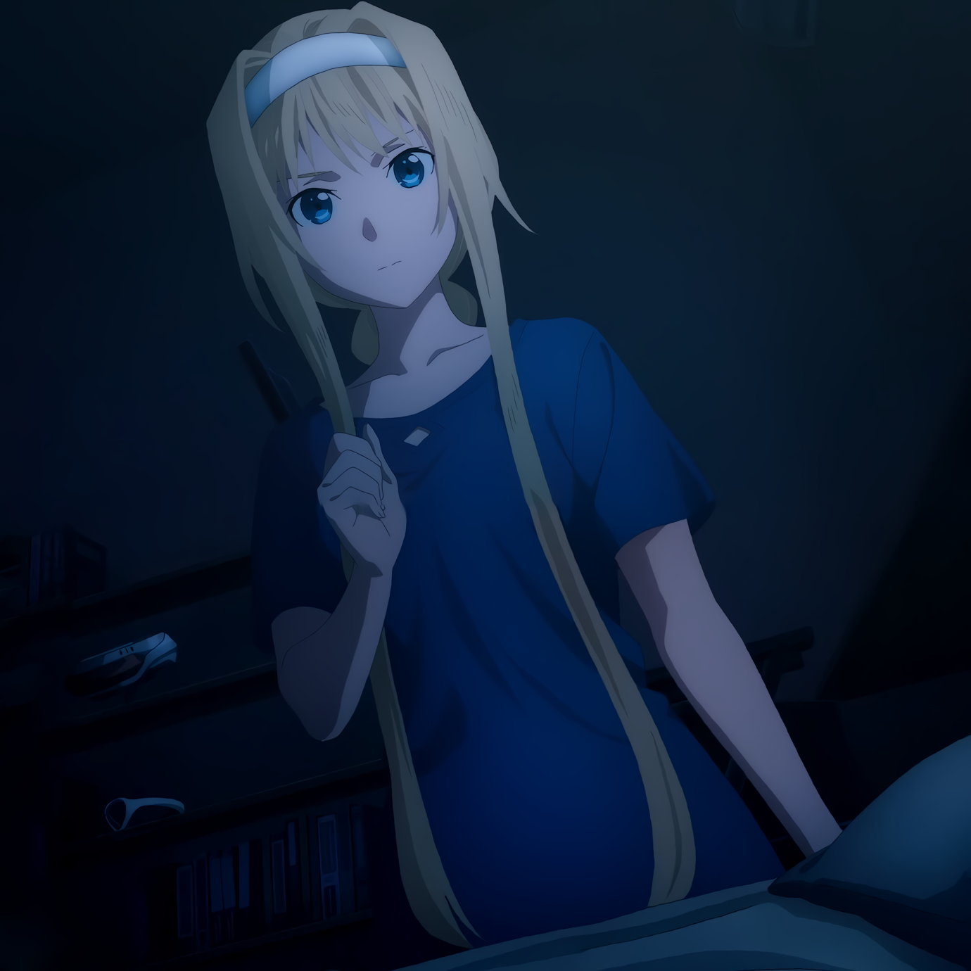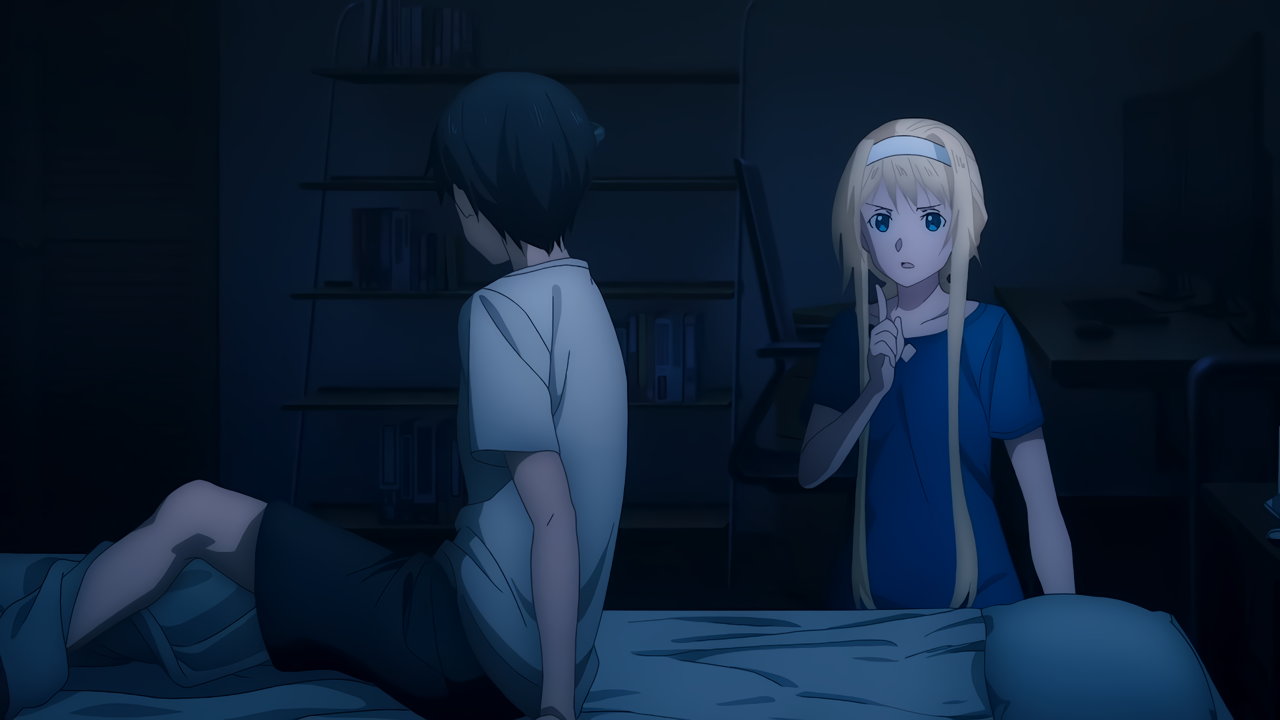 キリトの寝室へ夜這いに来た、裸Tシャツ姿のアリス。
