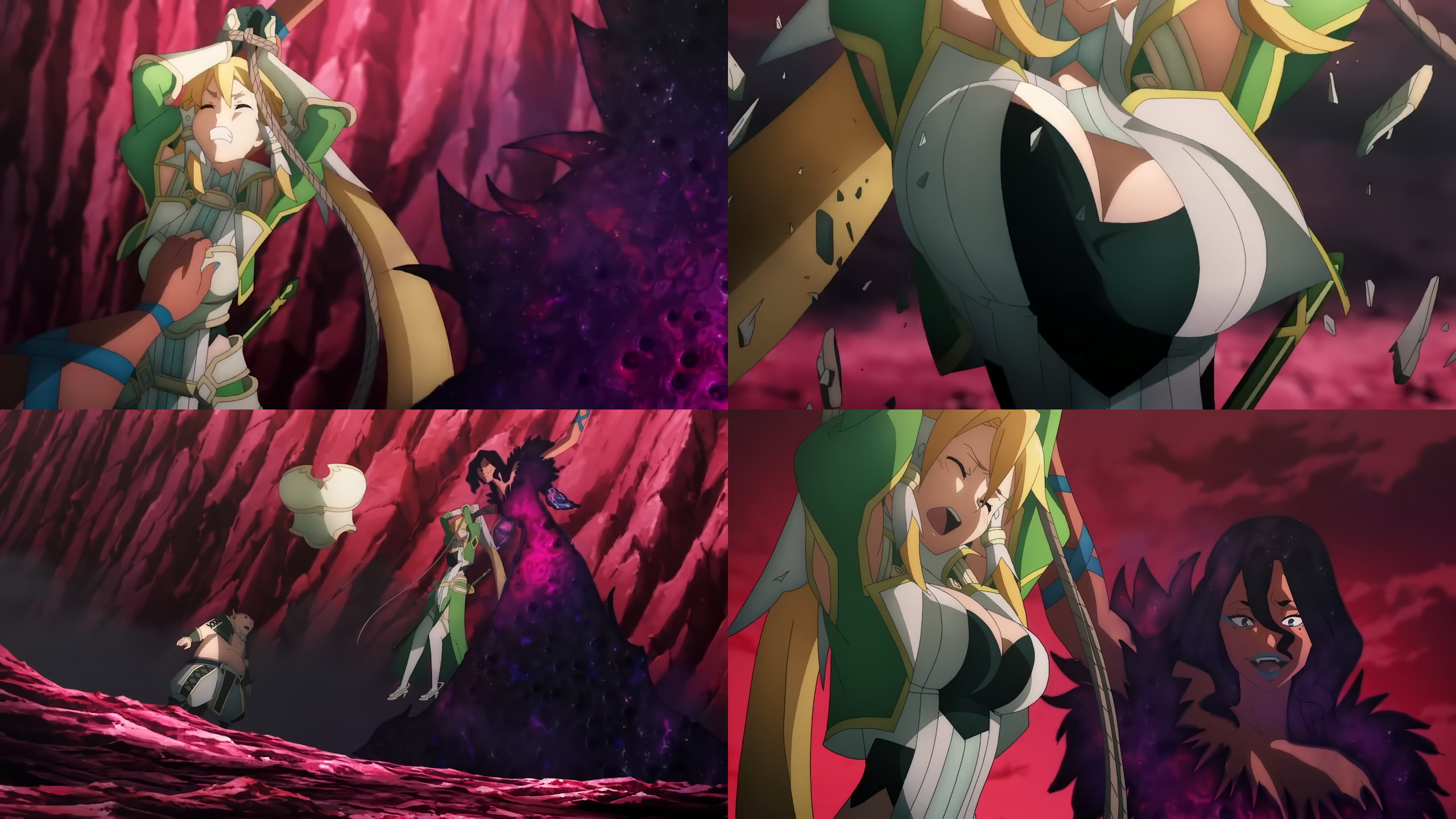 触手攻撃に耐えつつ、悶え喘ぐリーファ。