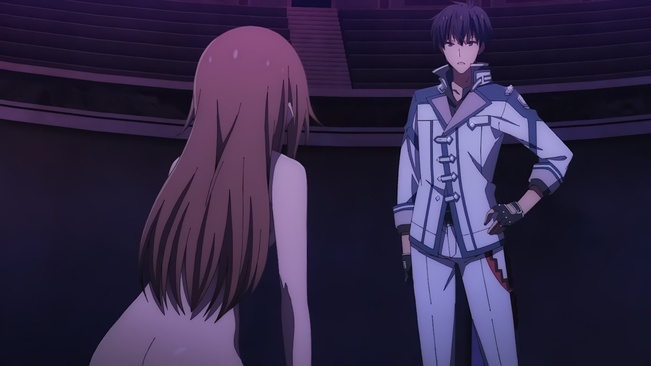 アノスに強制転生させられたエミリア。全裸となり、別人の姿に変わっている。