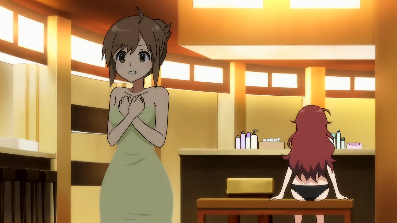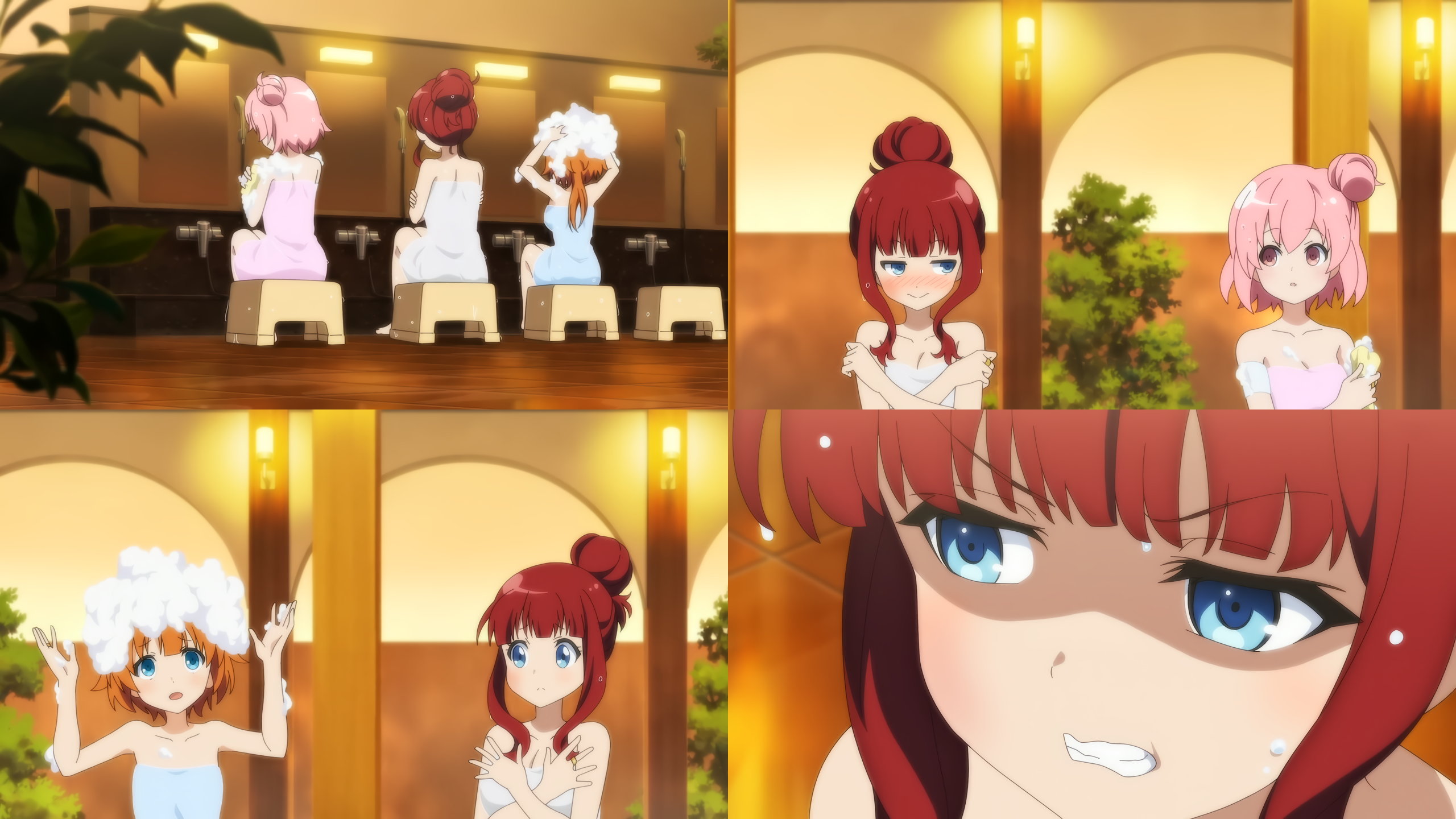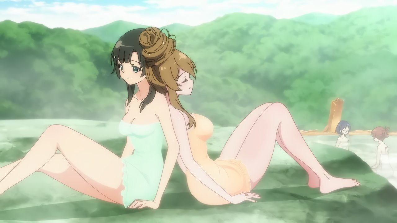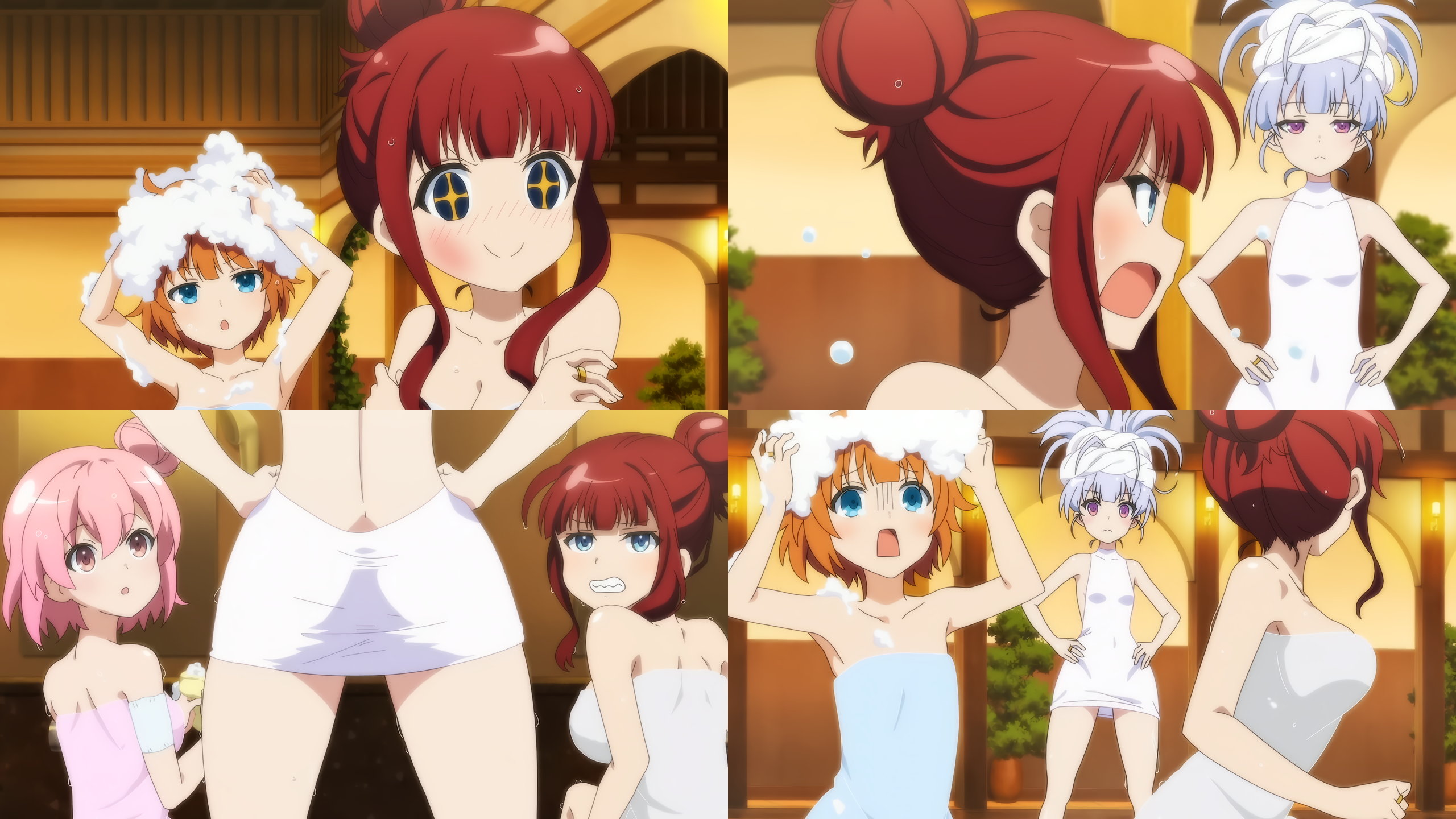 洗体・入浴中の女子たち。ただしタオルを巻いているなのがやや残念である。