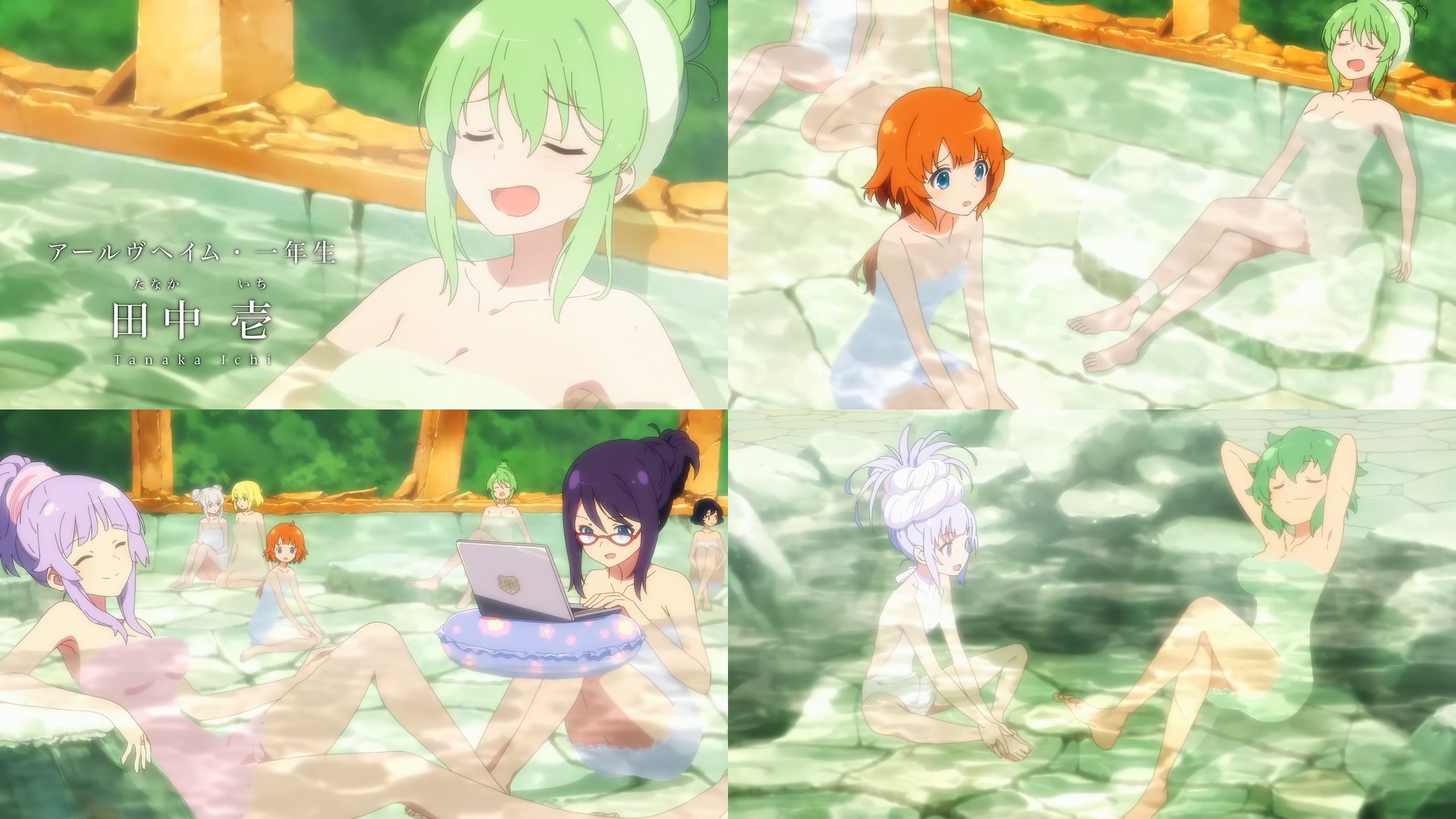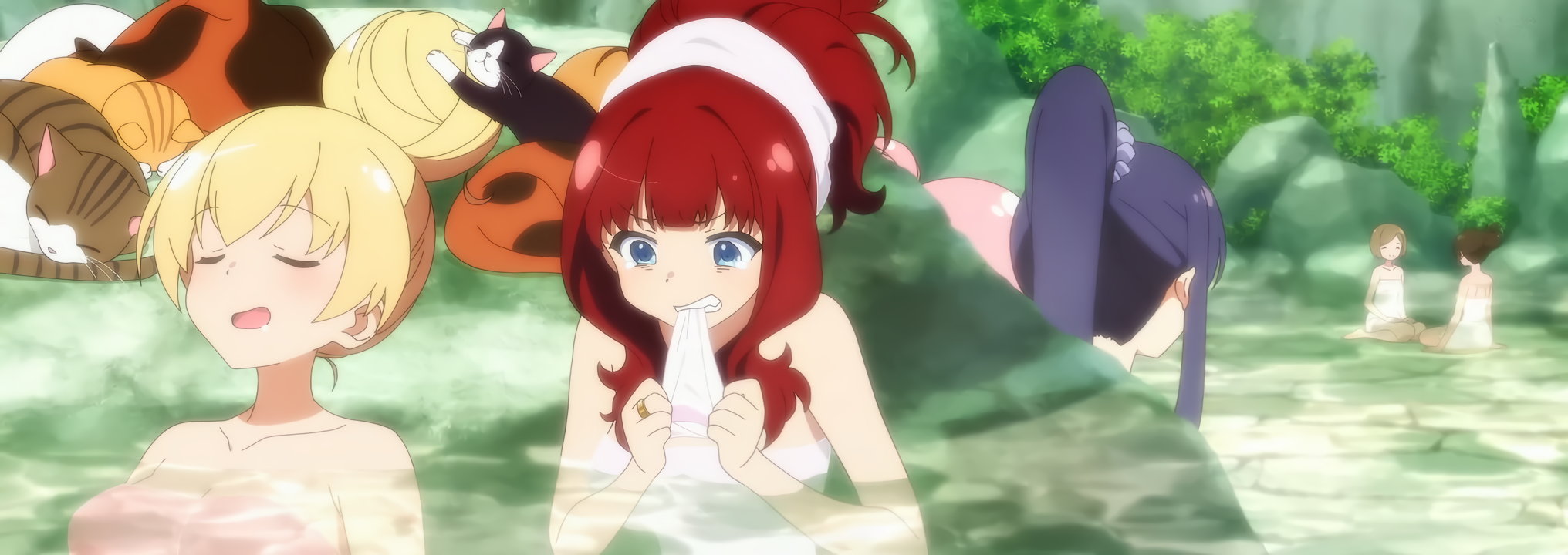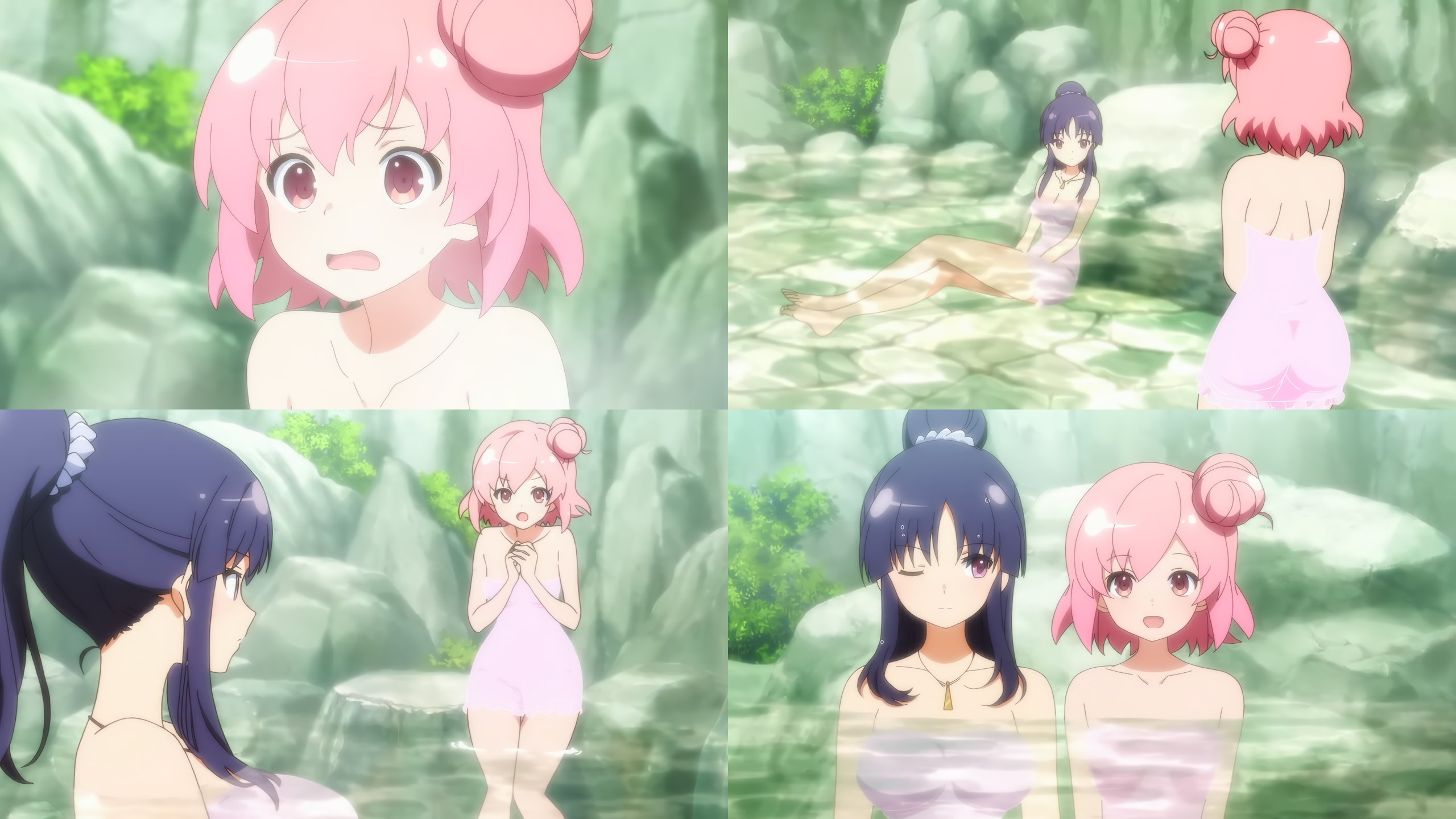 洗体・入浴中の女子たち。ただしタオルを巻いているなのがやや残念である。
