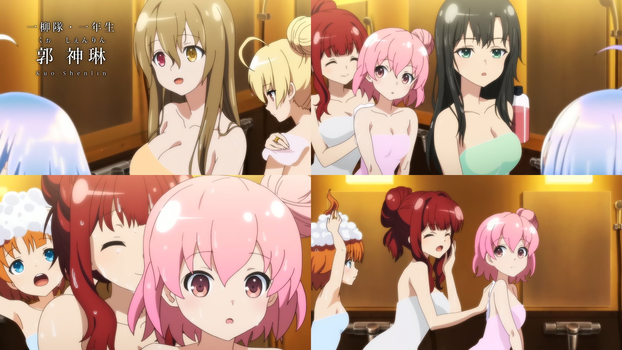 入浴中・裸バスタオル姿の神琳・雨嘉・梨璃・楓・二水・ミリアム。