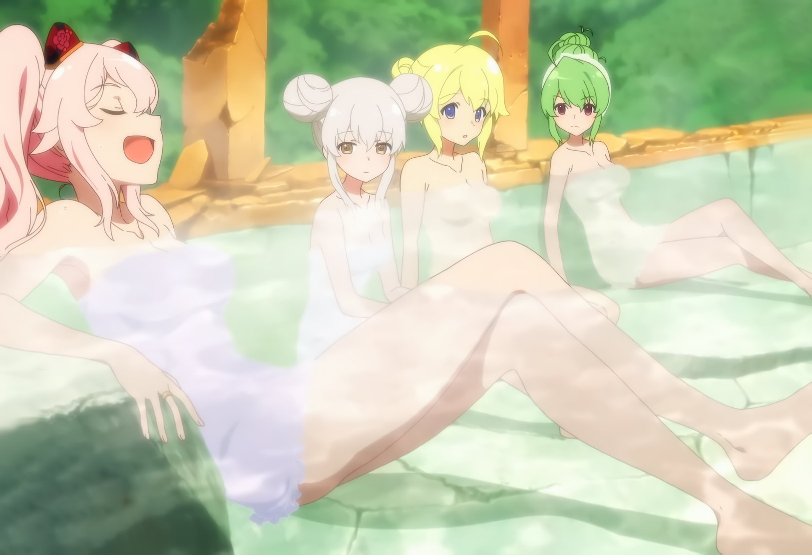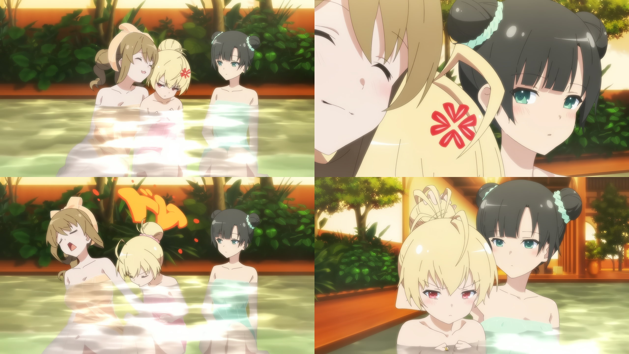 入浴中・裸バスタオル姿の鶴紗・神琳・雨嘉。