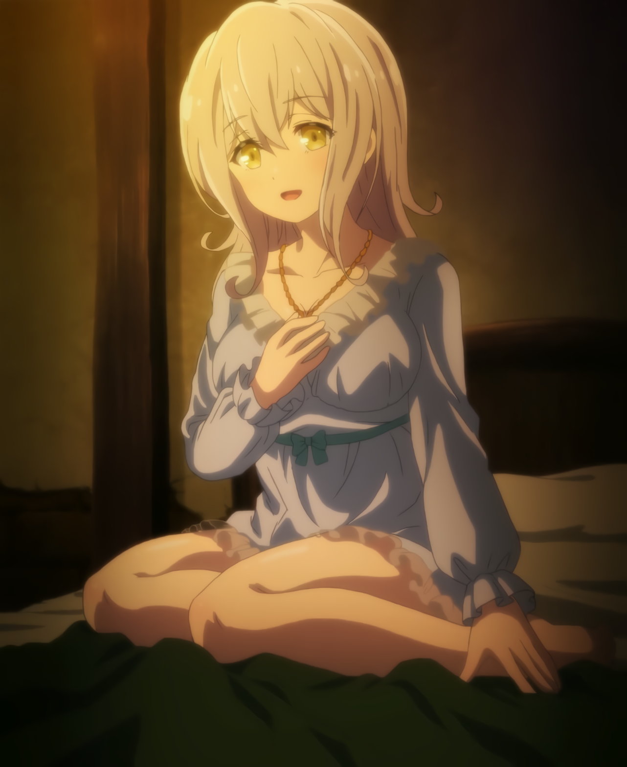 ワンピース寝間着姿のルマキーナ。胸谷間と生脚がエロい。