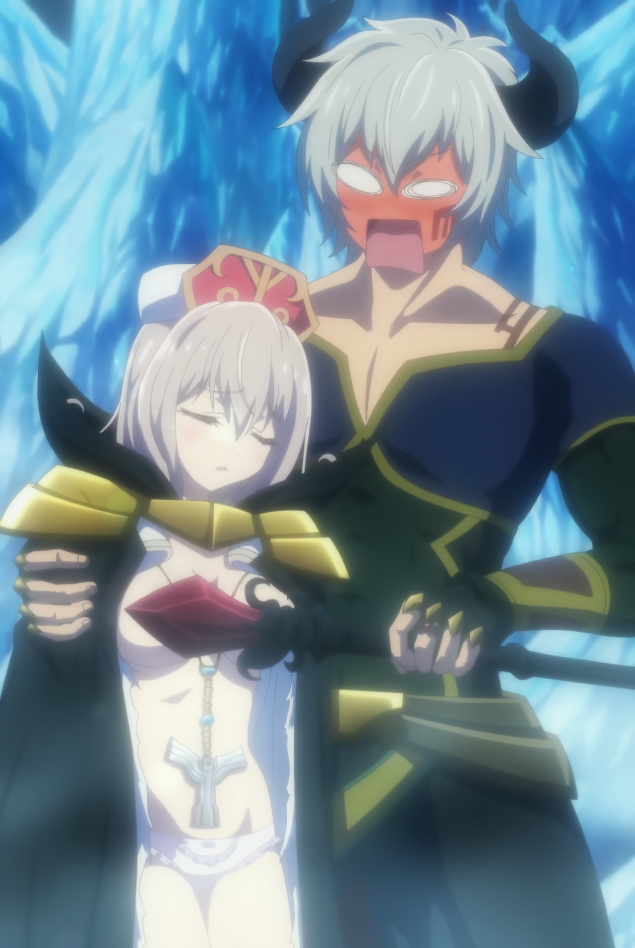 さらにホルンのズボンを脱がすディアブロ。そこで彼女の性器を確認し、衝撃を受ける。
