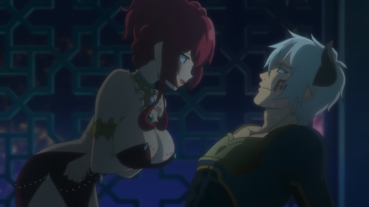 露出度の高いセクシーな衣装で、ディアヴロを誘惑するファニス。