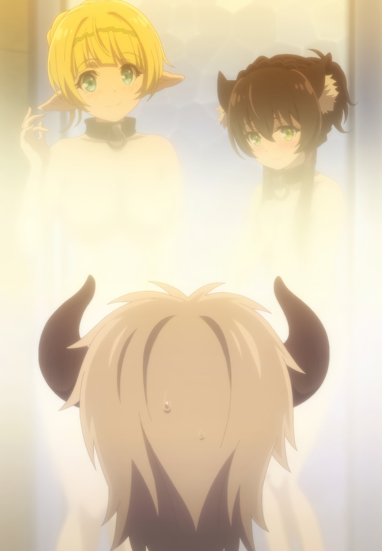 入浴中のディアヴロ、シェラ、レム。