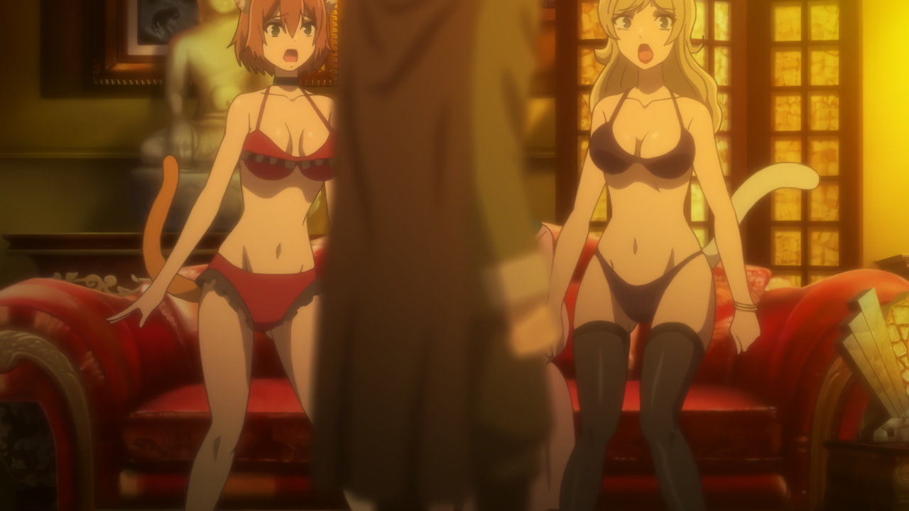 パンツ一丁となり、ディアヴロに尻を向けるロゼ。