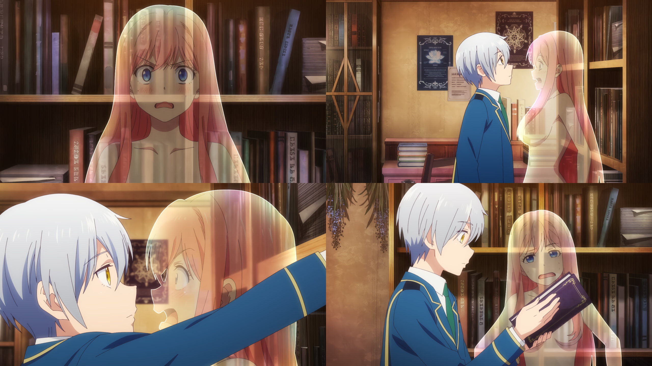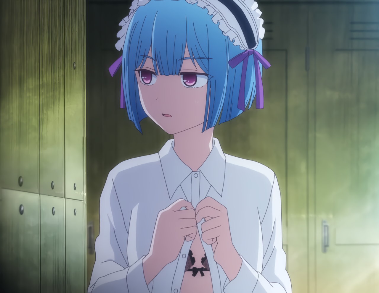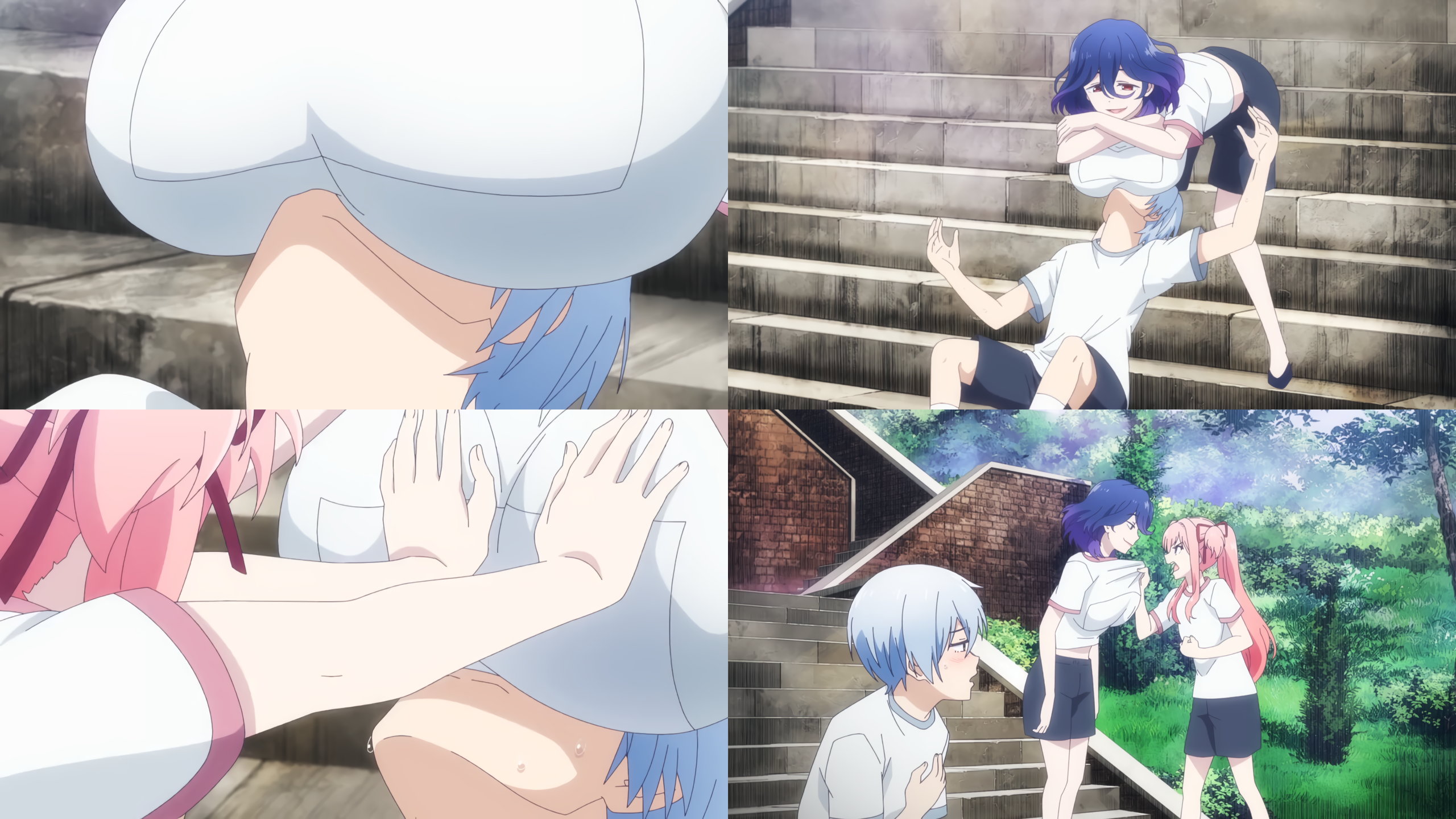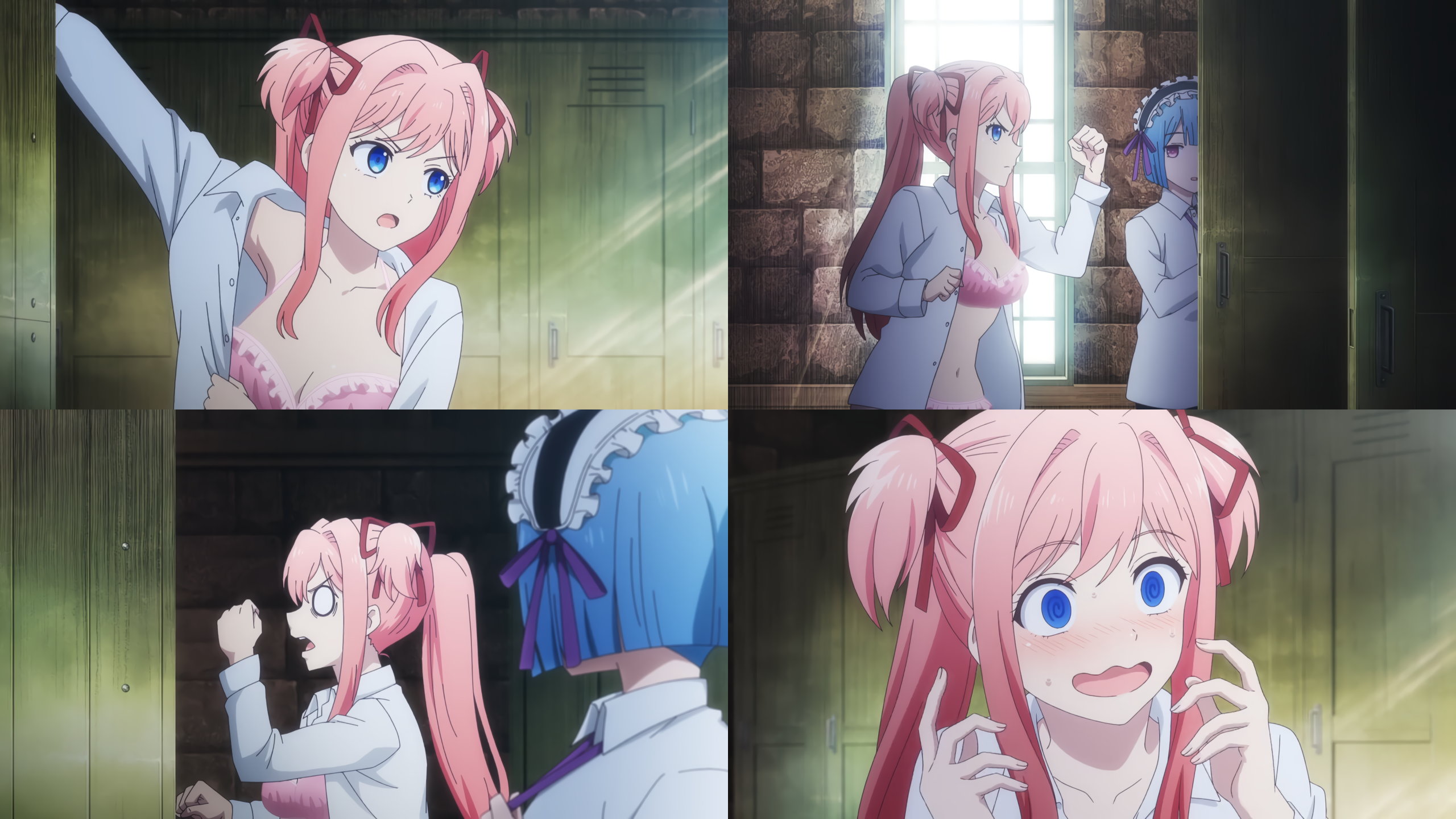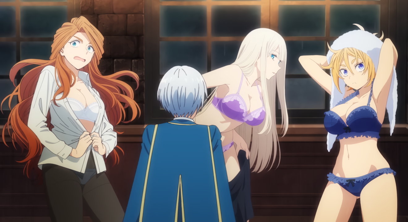 生徒会室で着替え中のクリス・エレナ・ジェシカ。生徒会女子たちの下着姿を目的するアルト。