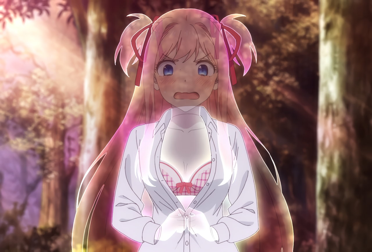 魔法薬の効果で透明人間化するリリア。しかし服のせいで姿が丸分かりなので、脱衣を余儀無くされる。