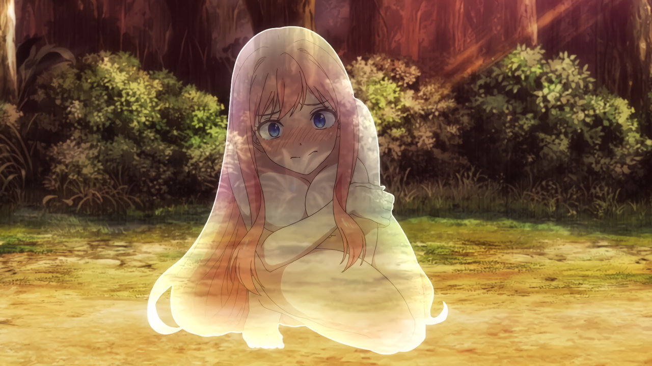透明化魔法が切れて、姿が丸見えになる全裸リリア。