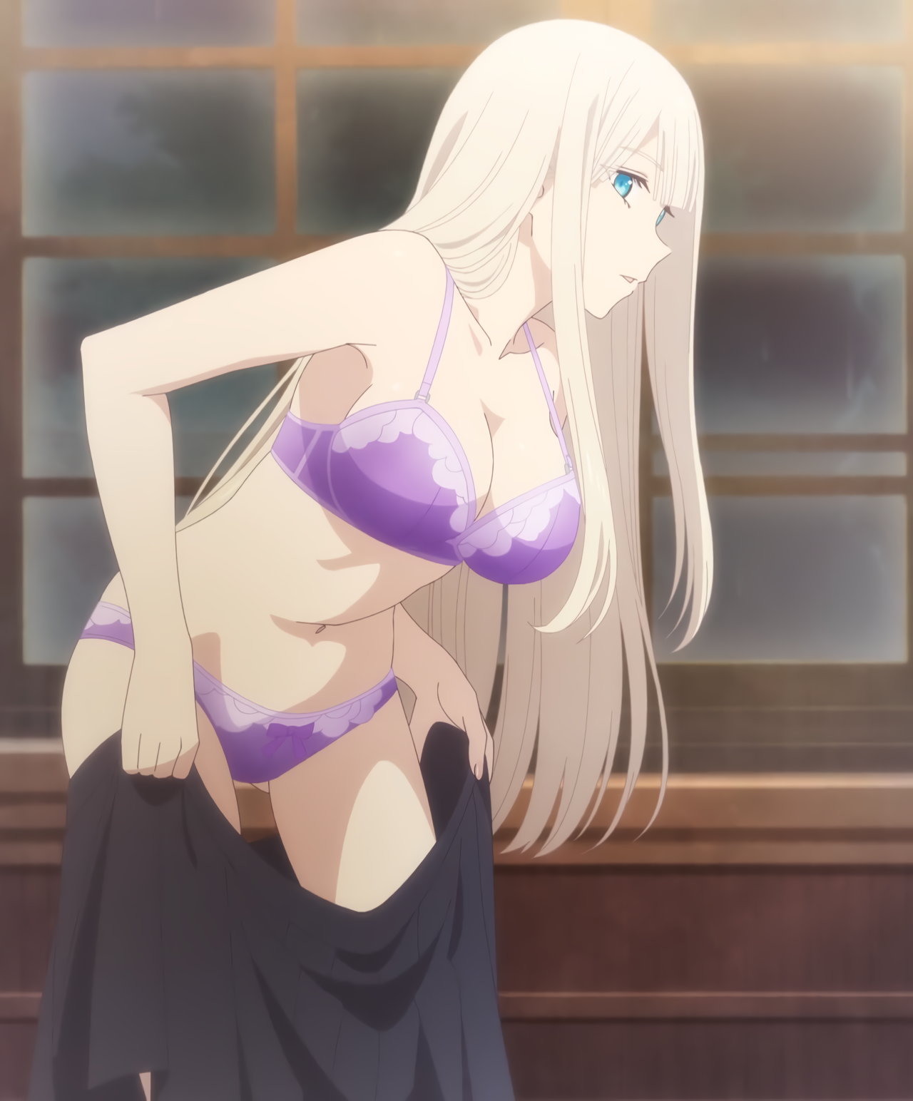 パンツを脱いで全裸になるリリア。