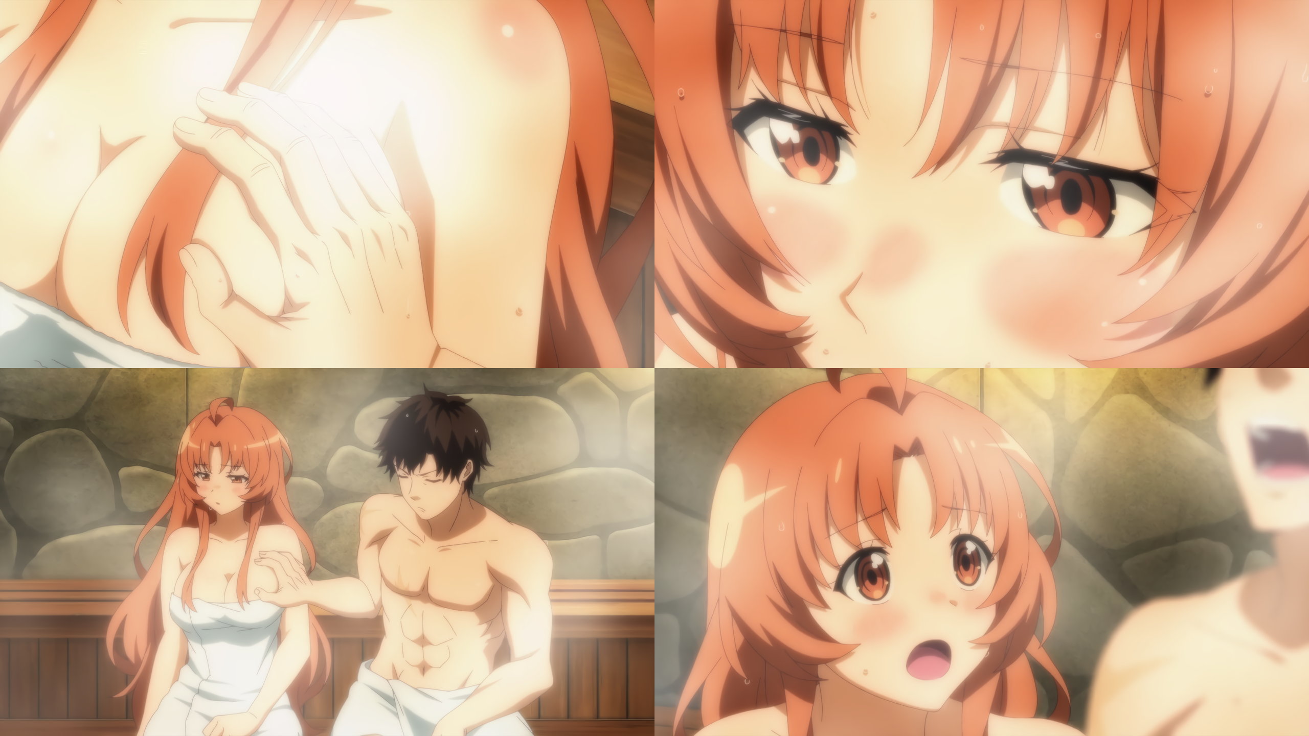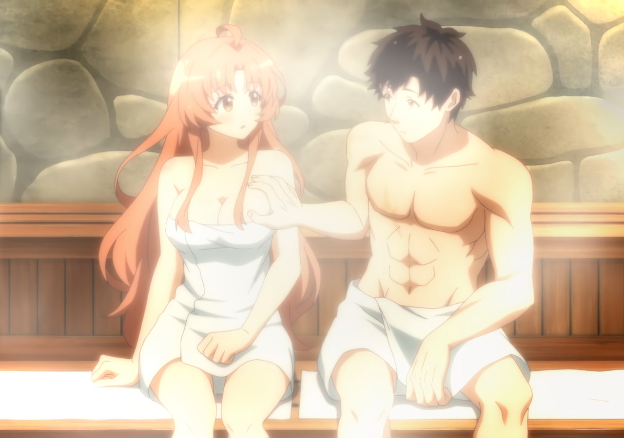 サウナ入浴中、マリーカのおっぱいを掴むダリエル。