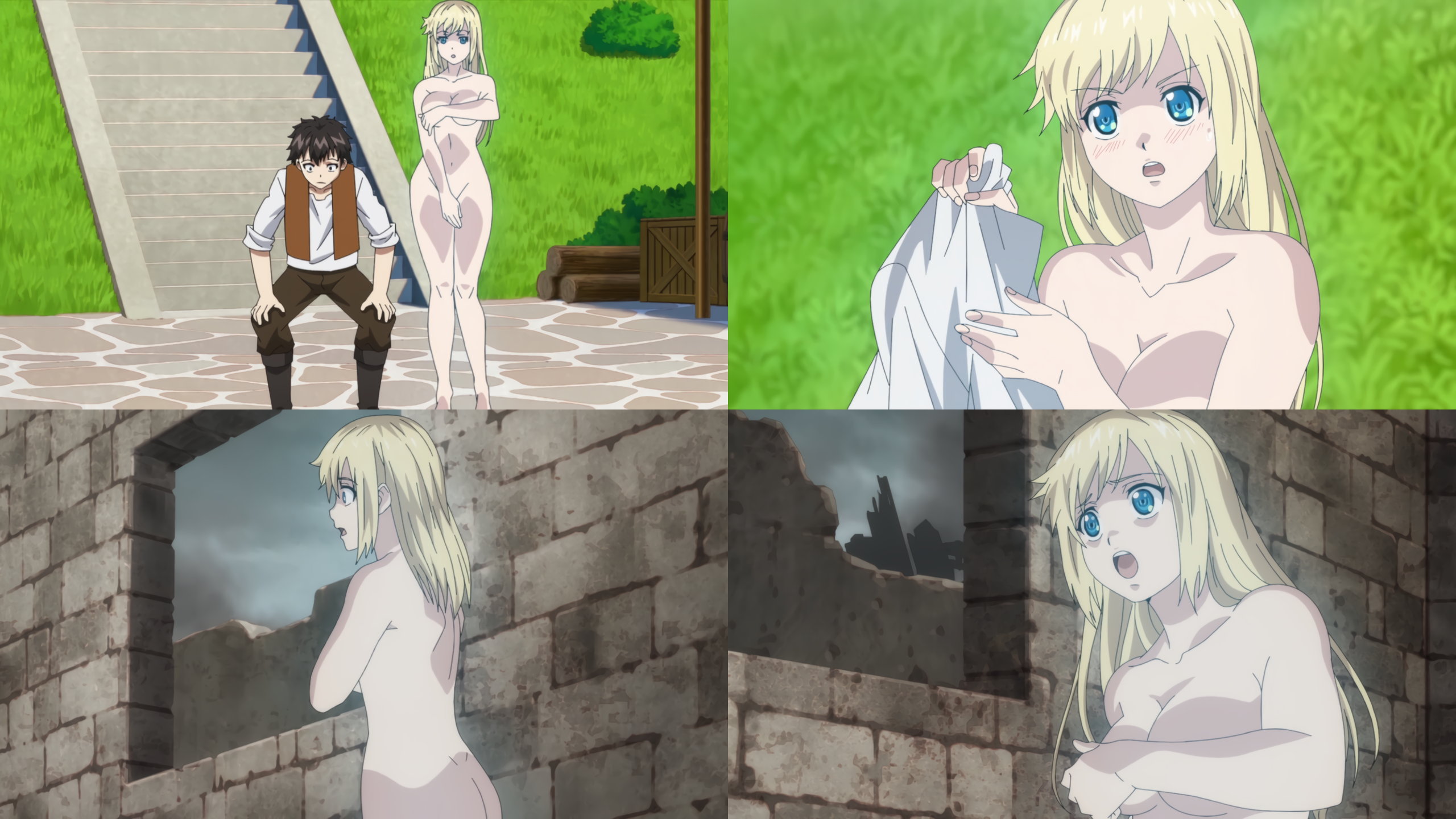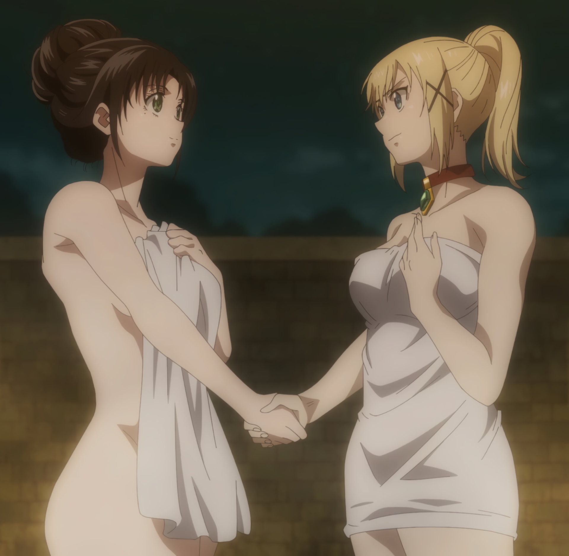 裸バスタオル姿のユナとマルグリット。