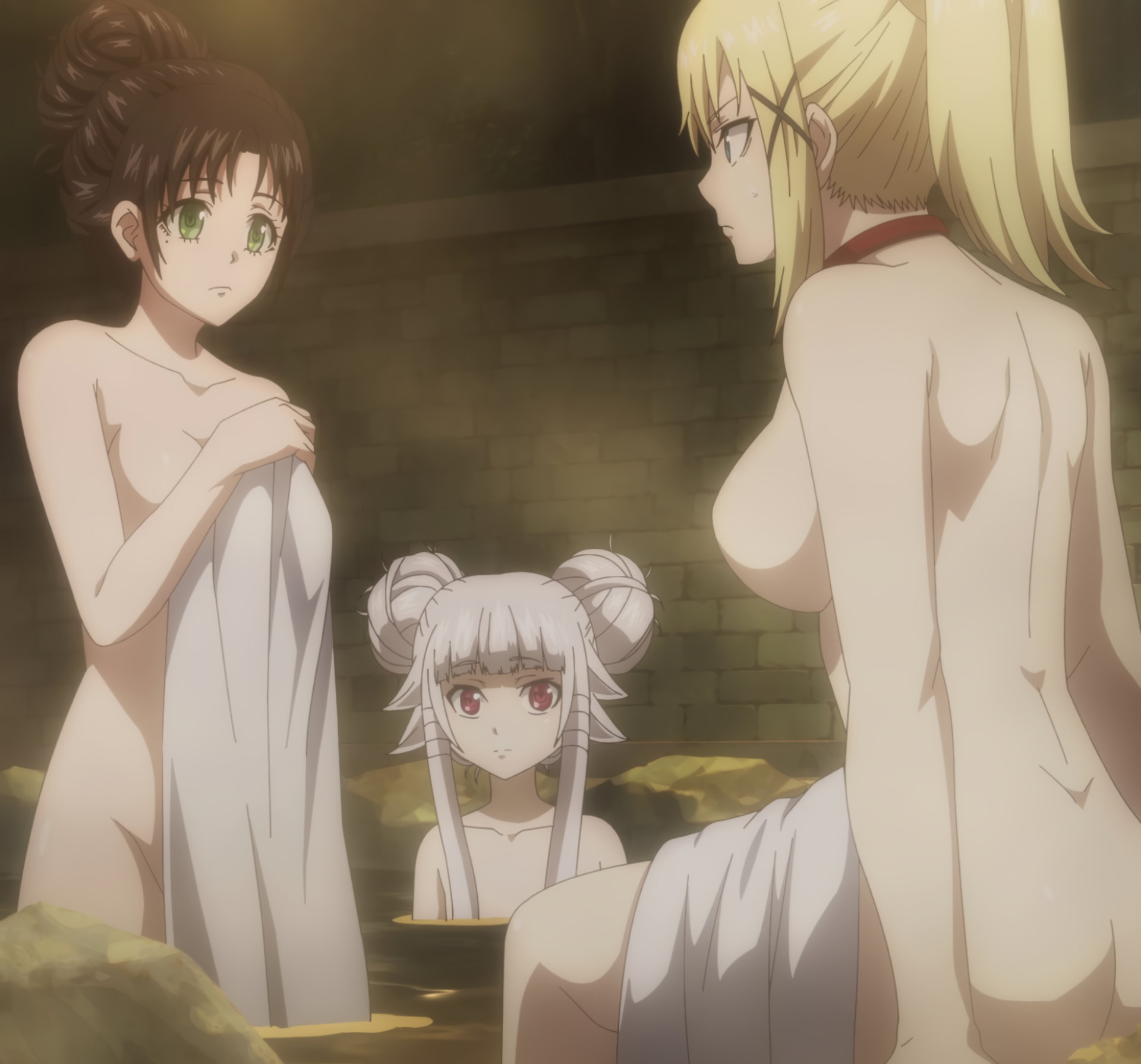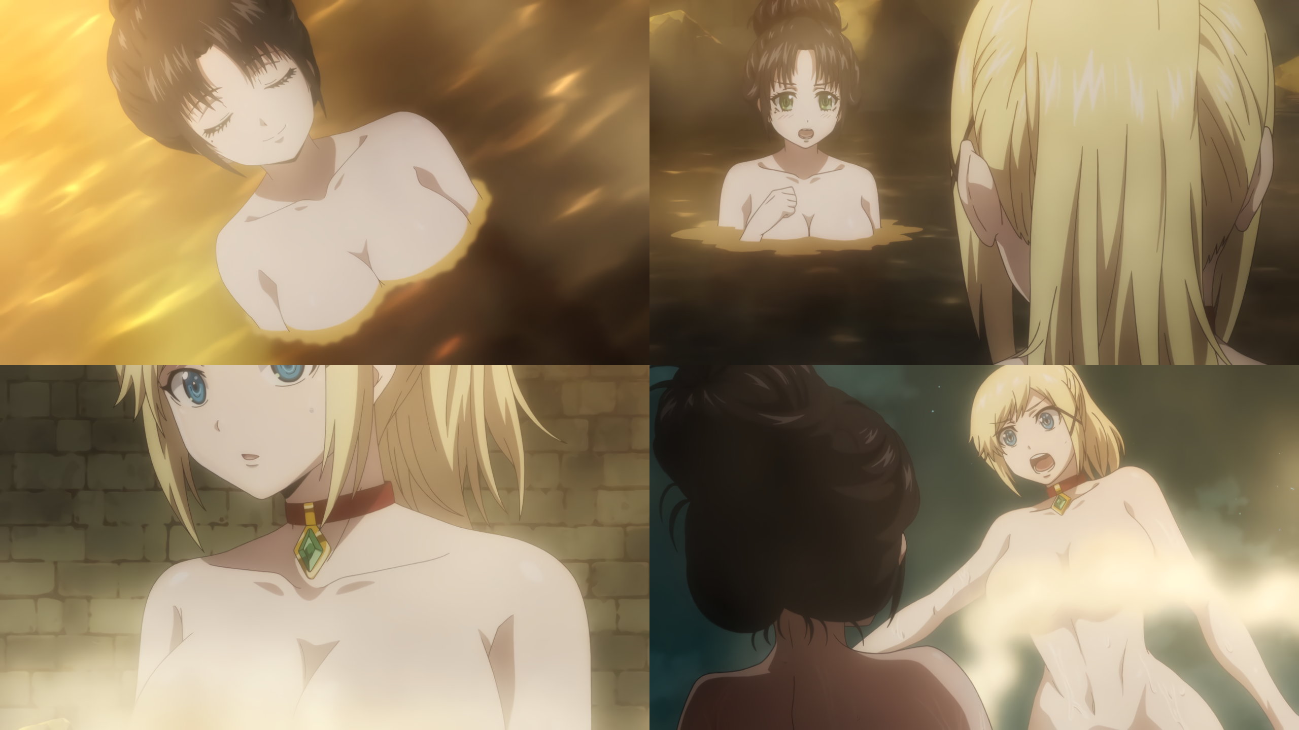 入浴中のマルグリット、ユナ、アンリ。