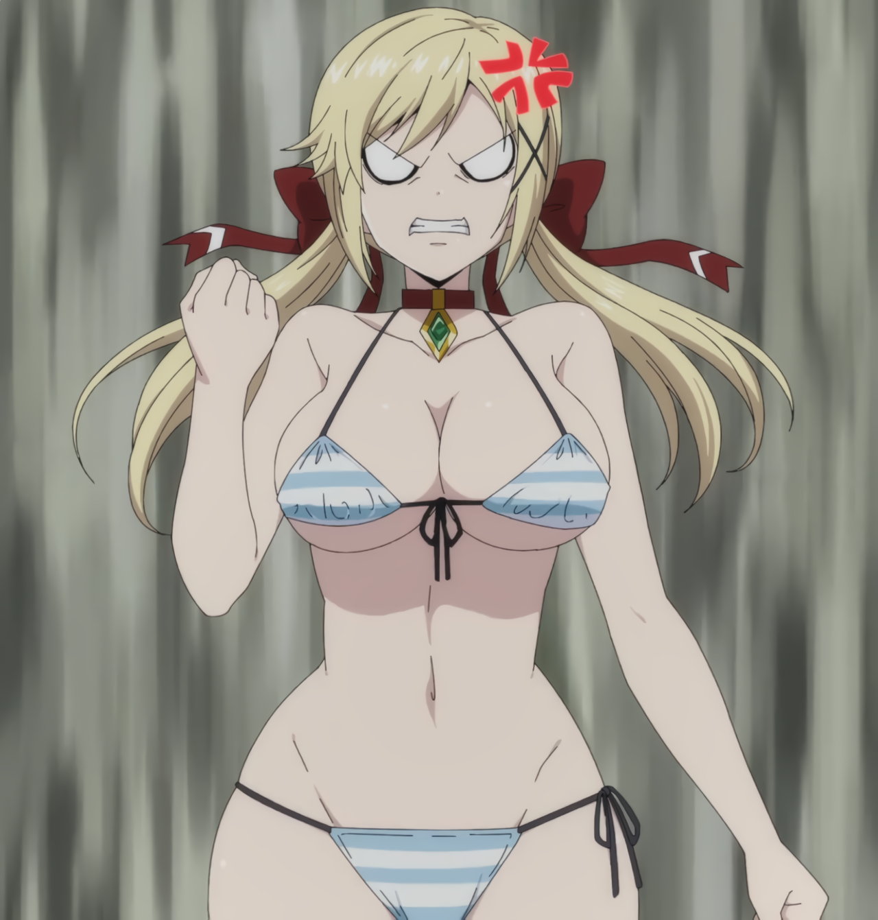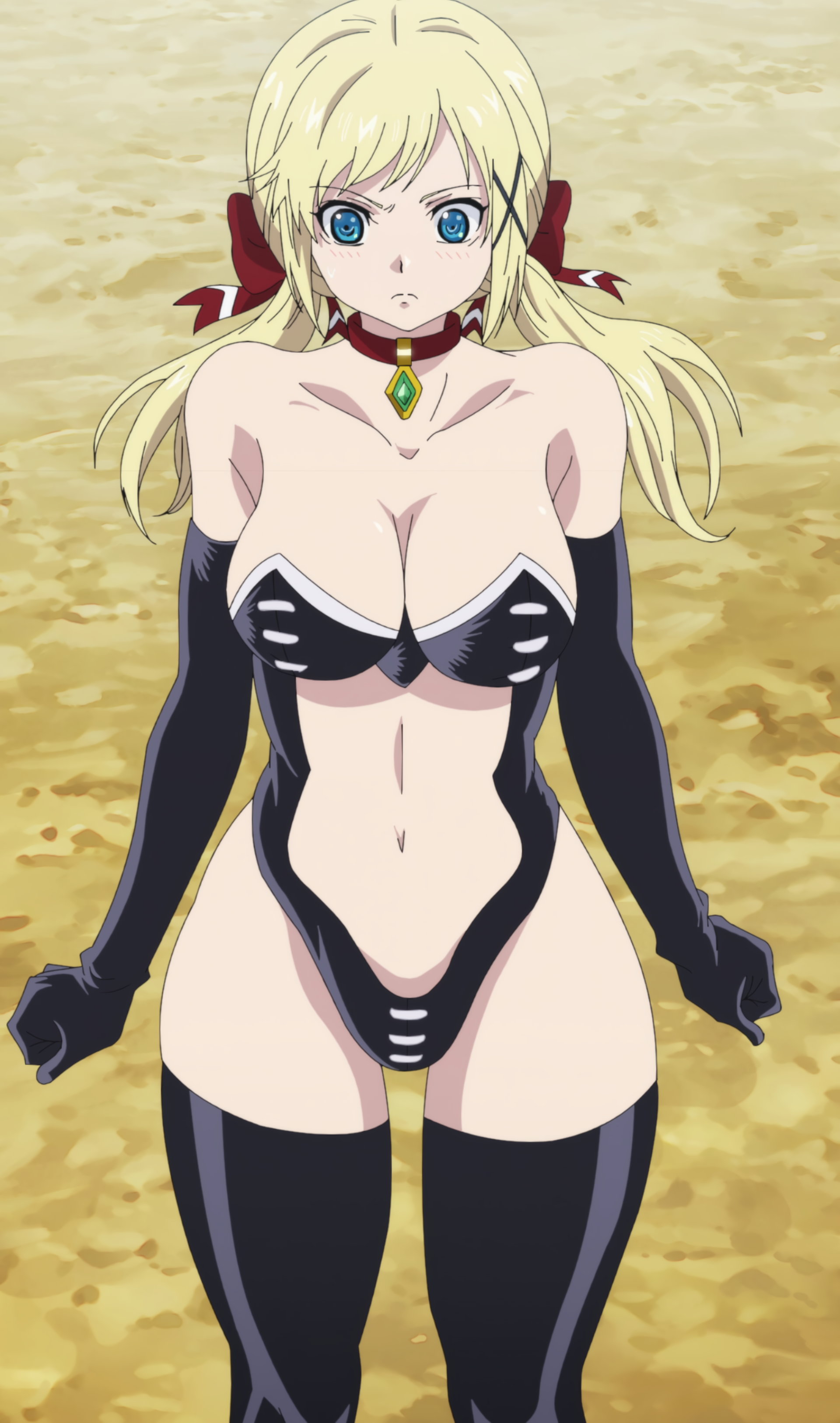 服を切られて胸元露出するマルグリット。