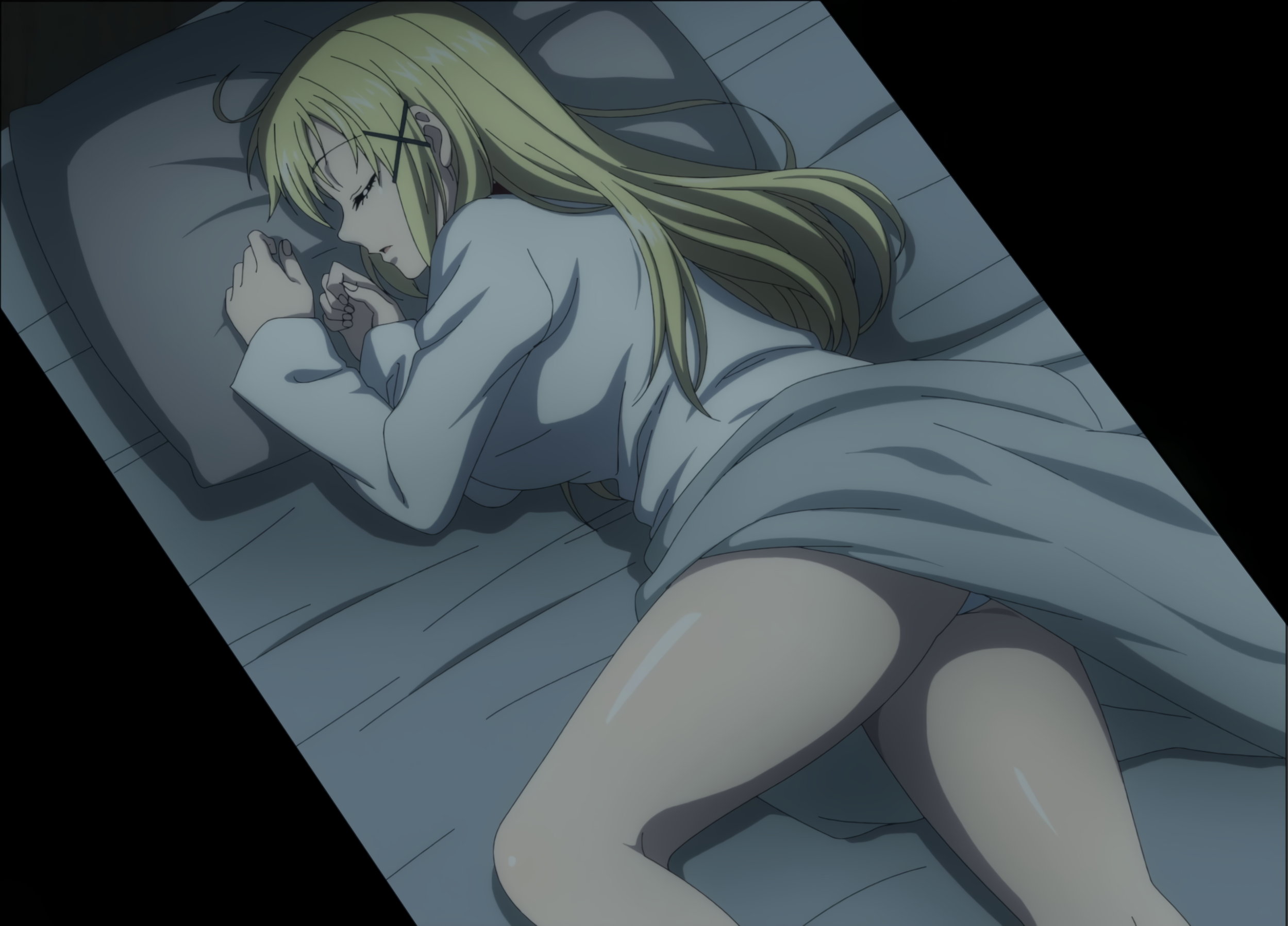 僅かにパンチラしながら寝ているユナ。