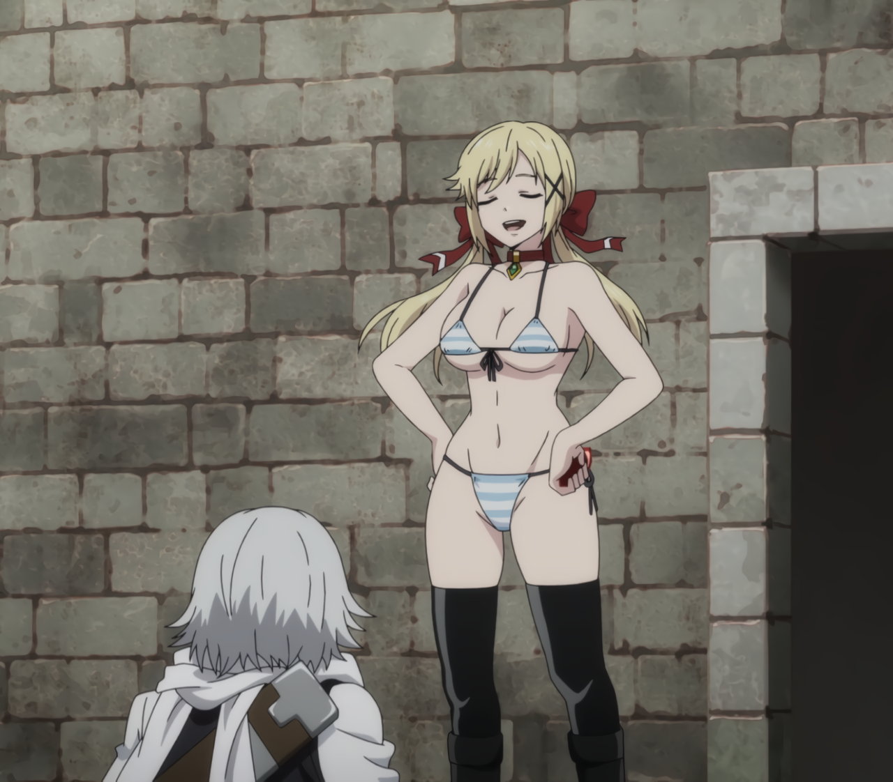 ビキニ水着ニーソ姿のユナ。