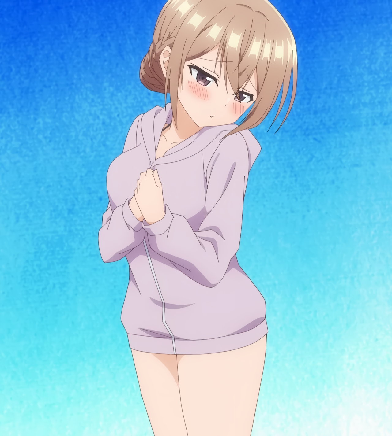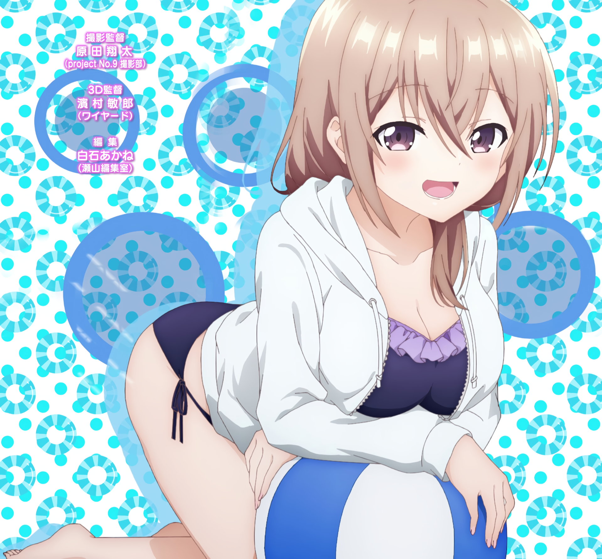 水着パーカー姿の詩織里。