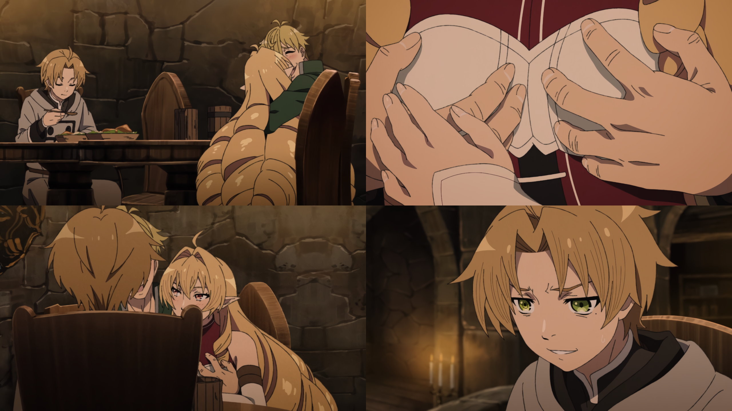 この後は挿入シーン突入かと思いきや、ルーデウスが勃起不全で性交は未遂に終わる。