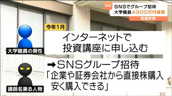 警察によりますと、2025年1月、仙台市太白区に住む60代の大学職員の男性が、インターネットで投資講座に申し込んだところ、講座の講師だという人物とSNSでつながり、投資のSNSグループに招待されました。