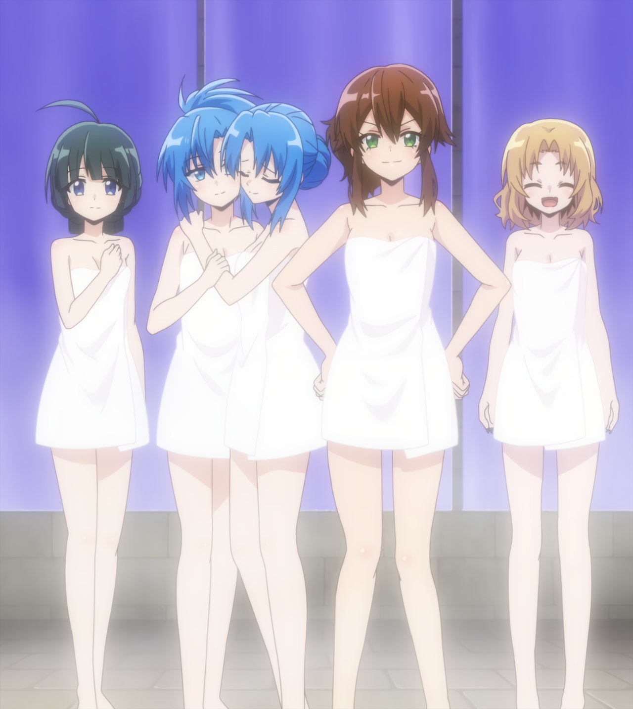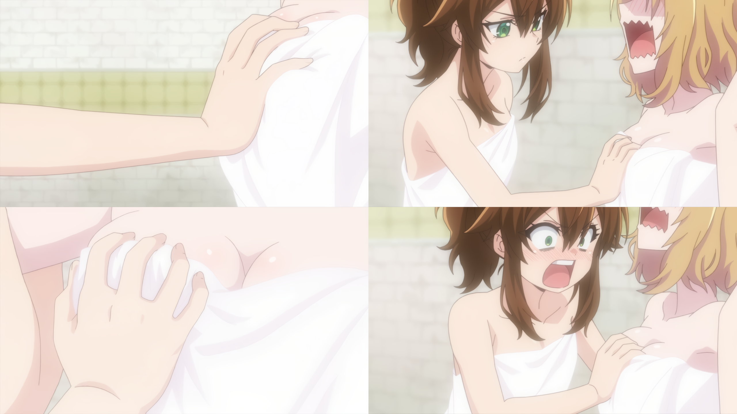 裸バスタオル姿で入浴中のニン/マニシア/リリア/リリィ/アモン。