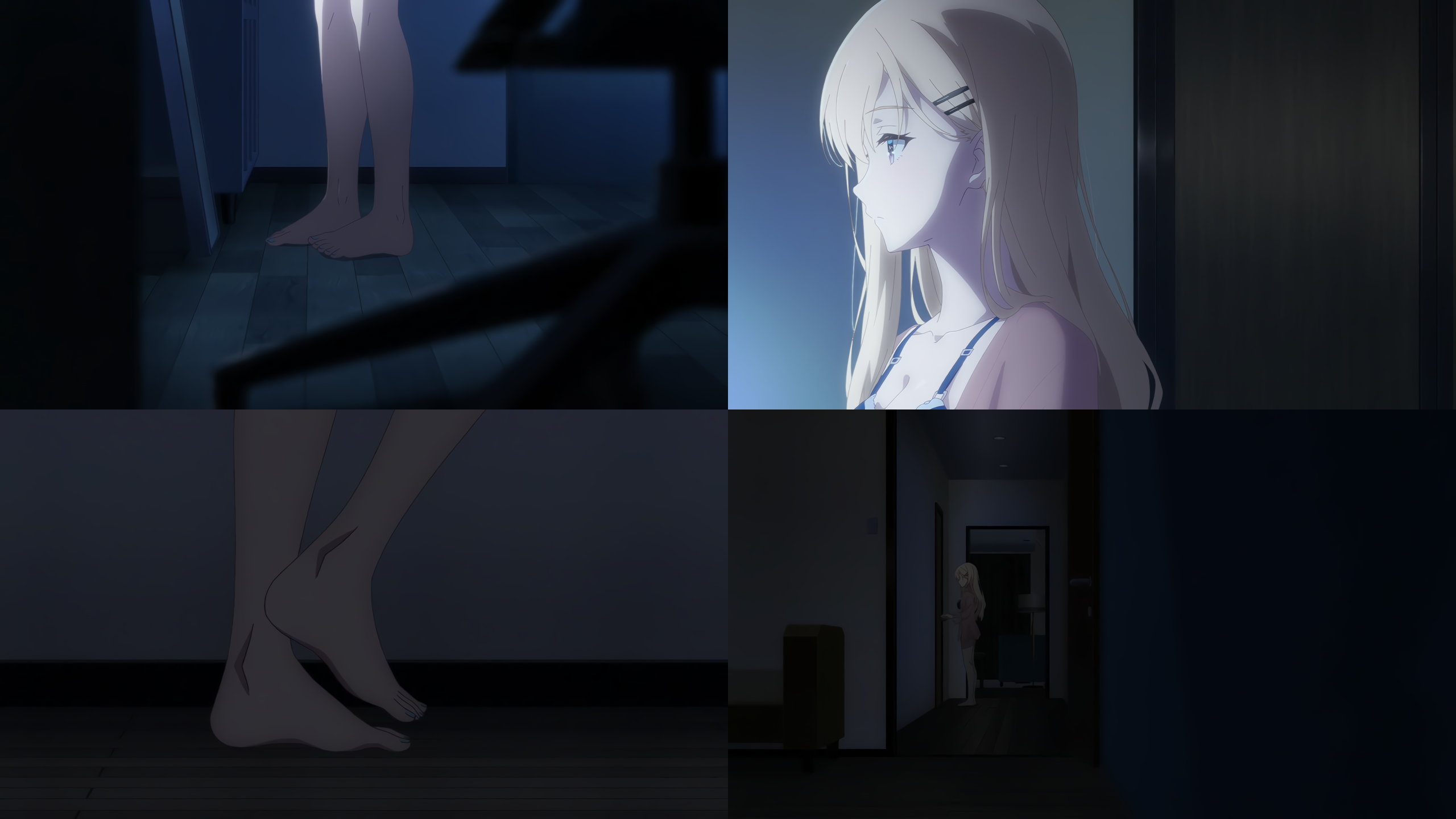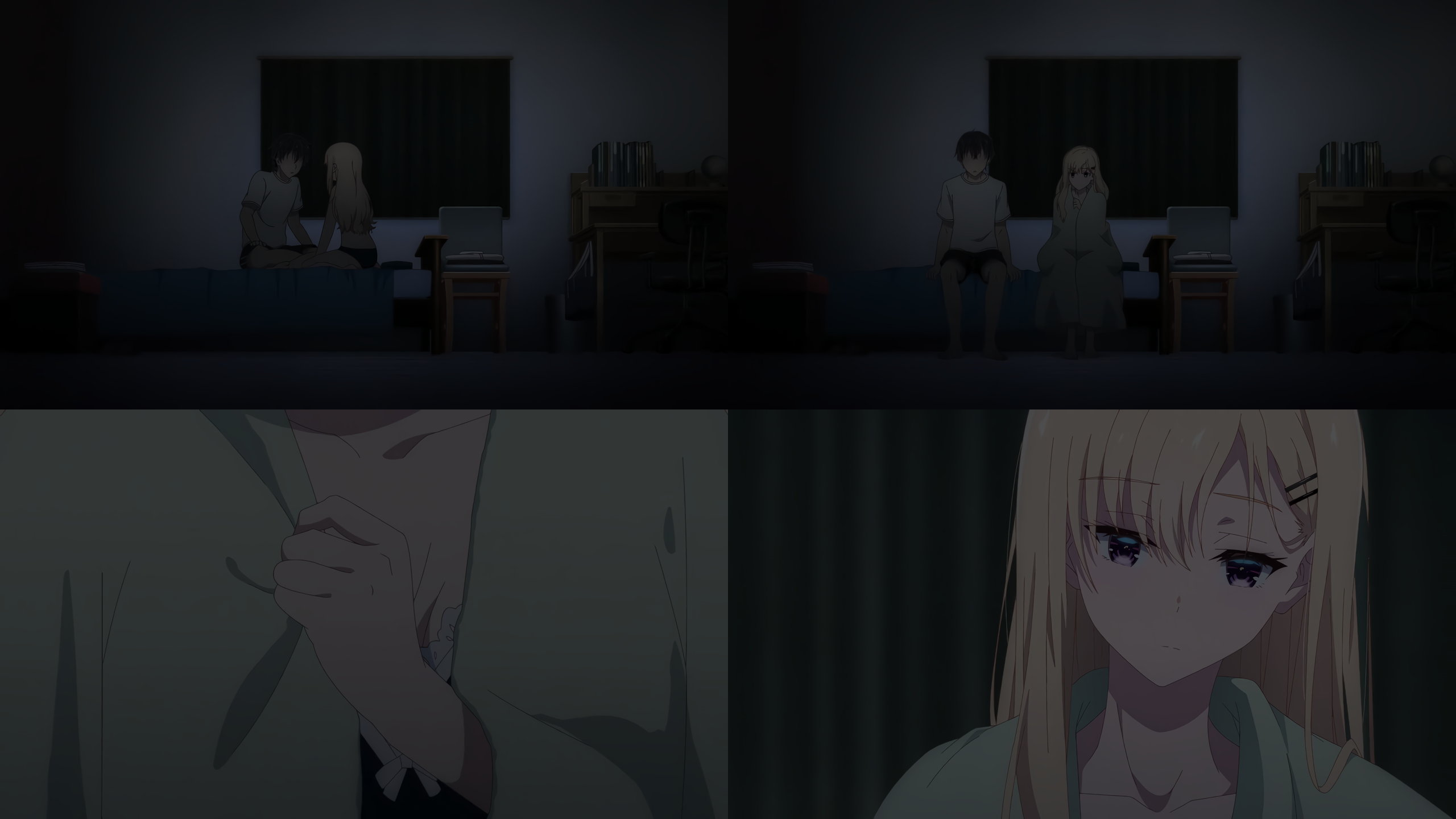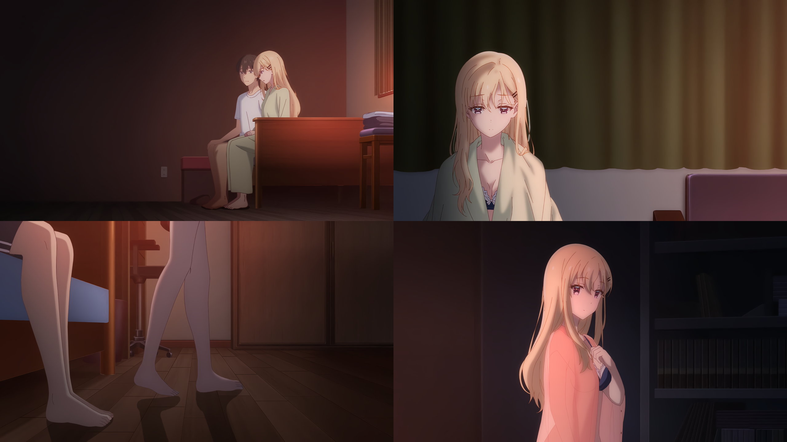 悠太の部屋へ夜這いに来た沙季。パジャマを脱いで下着姿になる。残念ながら足元アップばかりであまりエロくないが、偶にブラチラは見れる。