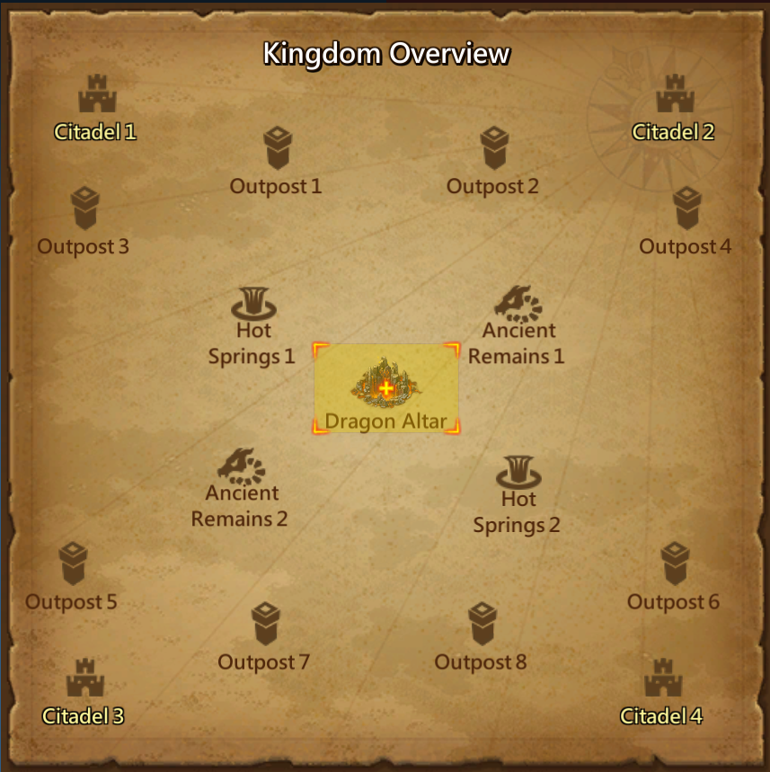 The Wonders scattered around the Dragon Arena are named Strongholds, and include Outposts, Transporters, Hot Springs, Ancient Remains and Citadels. Each Stronghold grants a different amount of points when occupied, and some grant army boosts, detailed below.