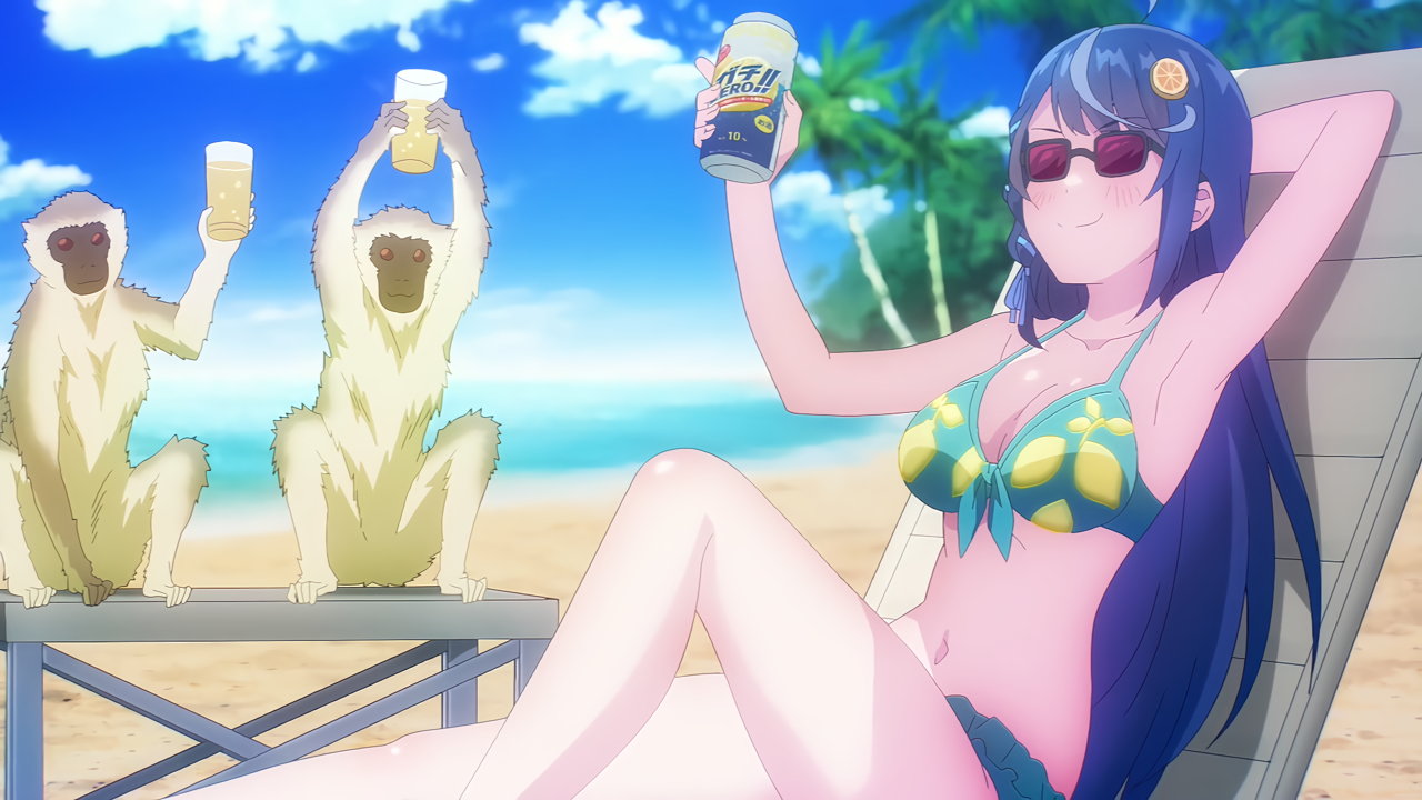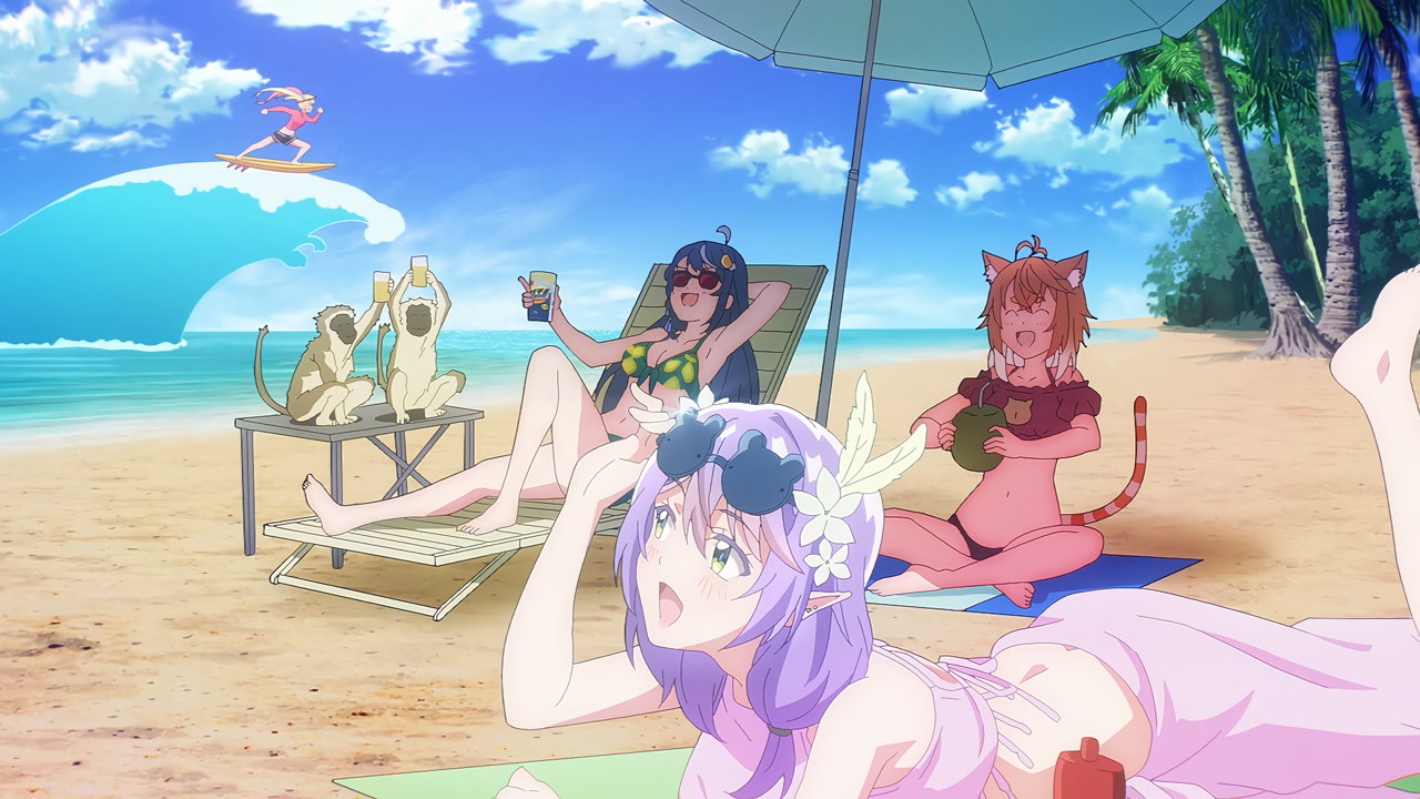ビーチで水着姿の苑風エーライ/心音淡雪/昼寝ネコマ。