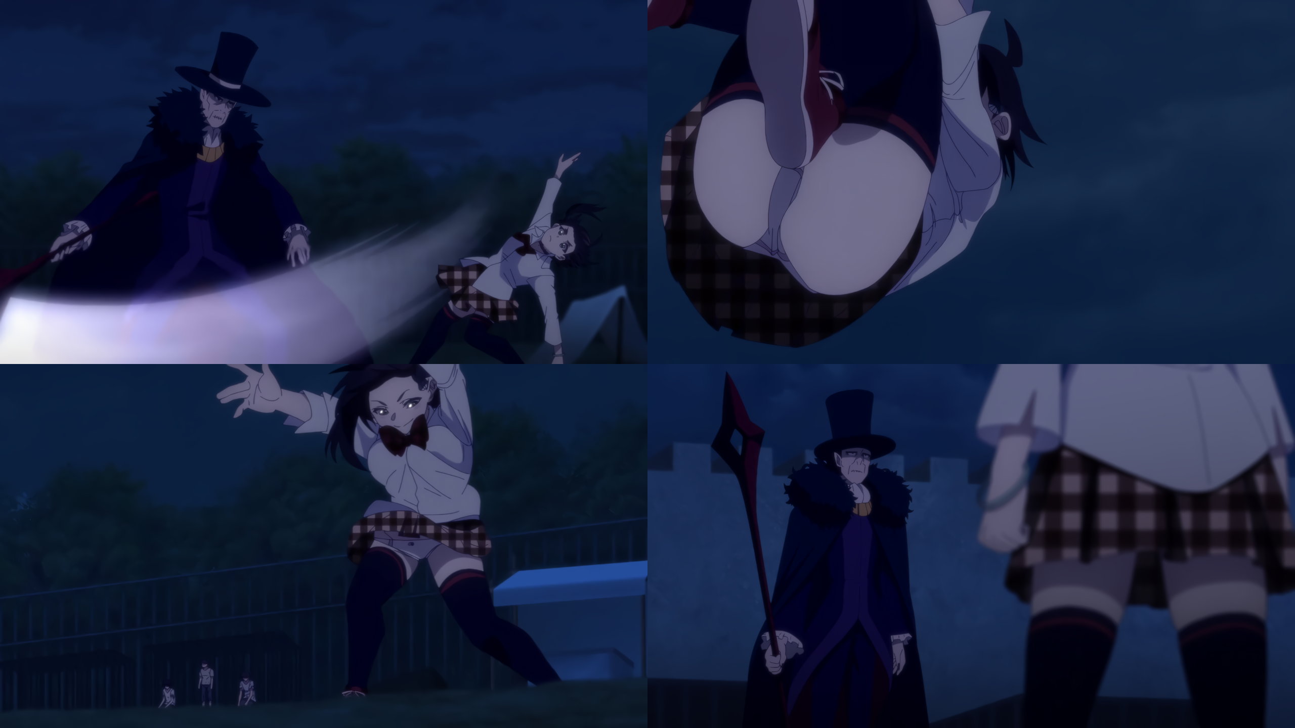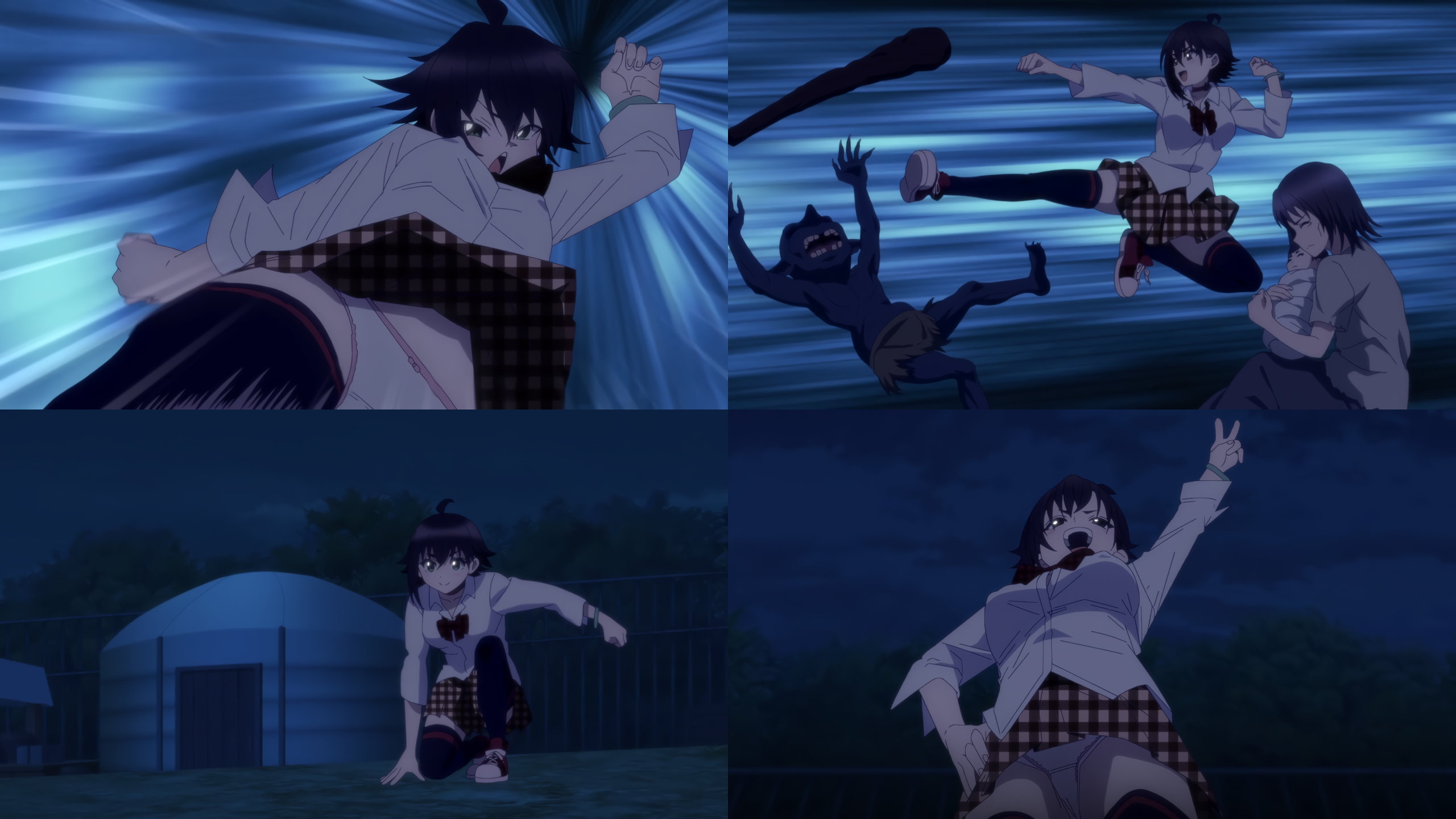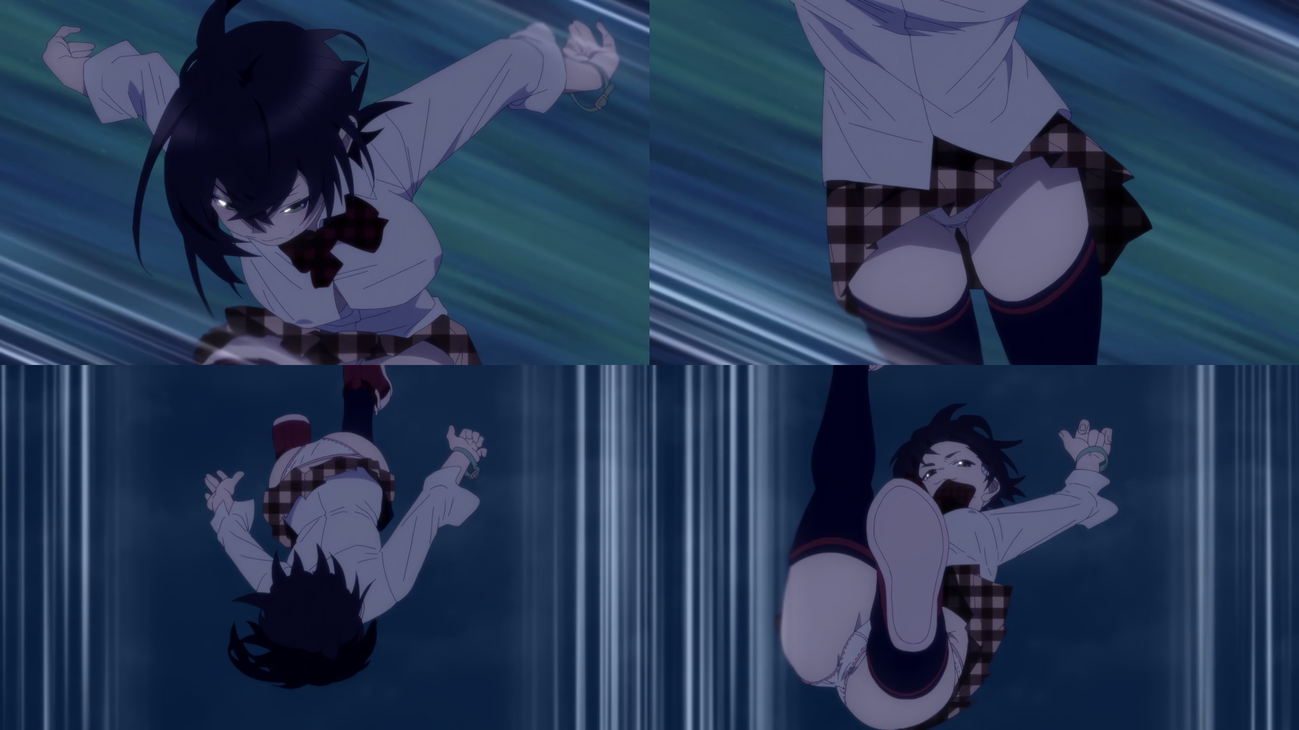 パンチラしながら格闘する茜。