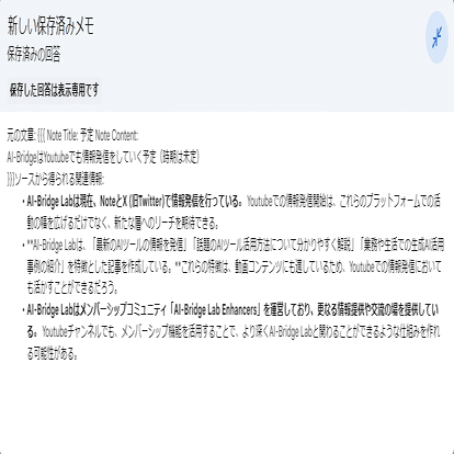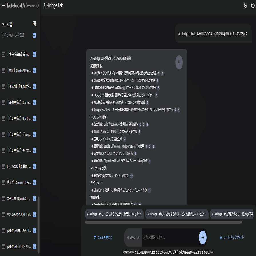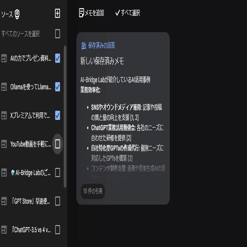 NotebookLMは、まだ試験運用中ながらも優れた記憶、検索、編集能力を持っており既に実務レベルで利用可能な能力が備わっていると言えます。