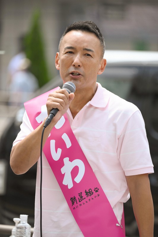 参院選が公示され、第一声を述べるれいわ新選組の山本太郎代表=東京都新宿区で2025年7月3日午前10時19分、渡部直樹撮影