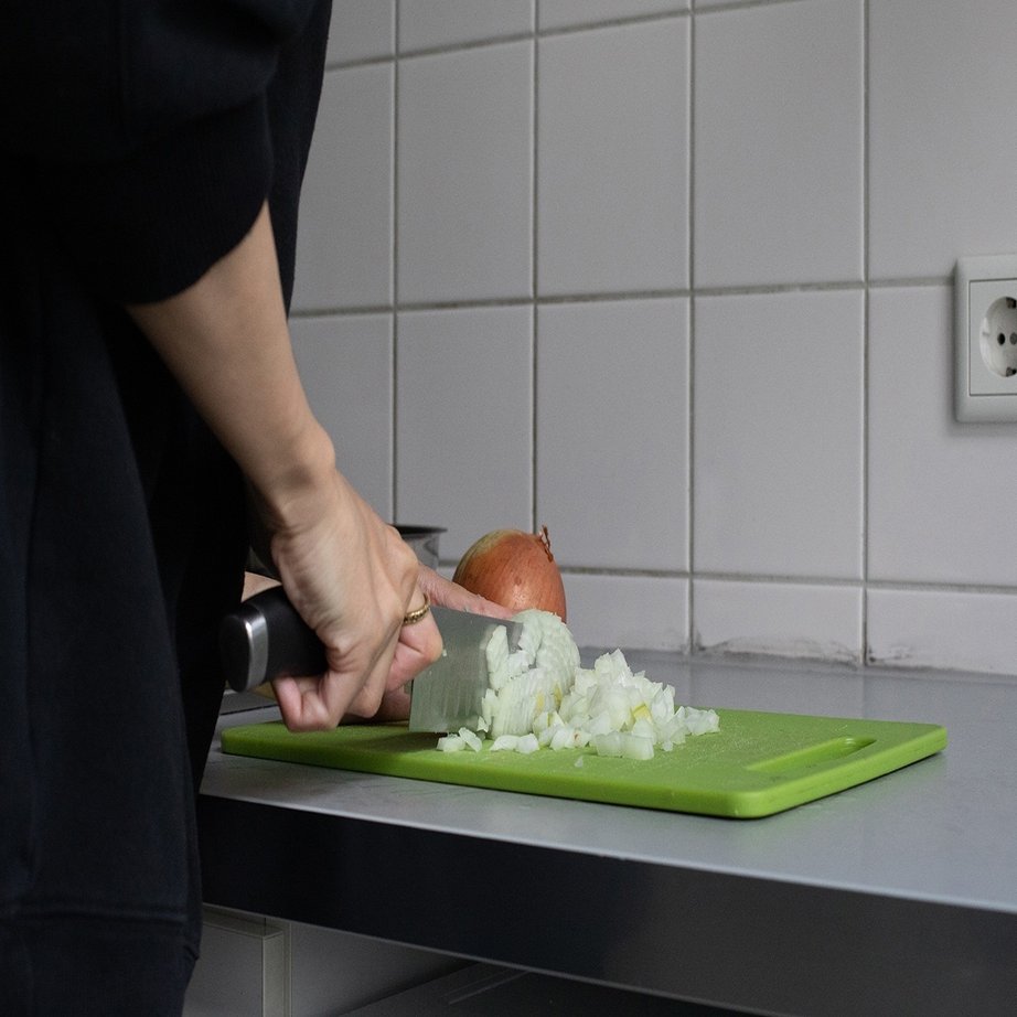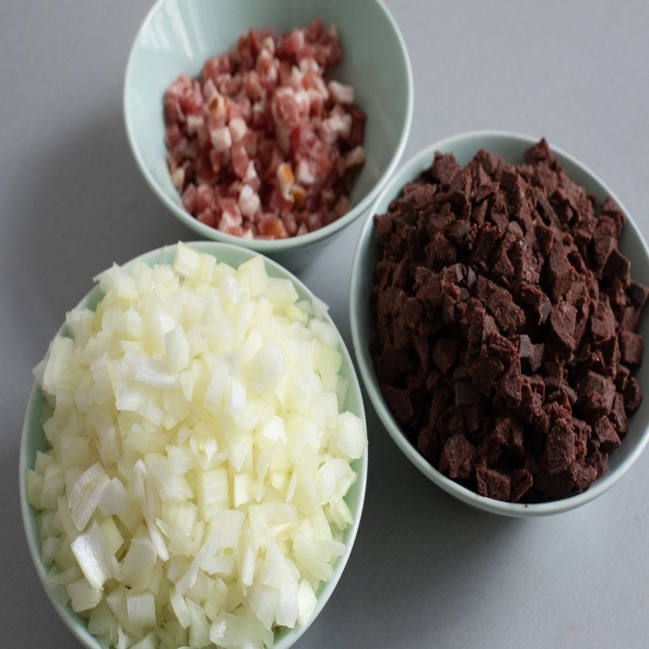 まず、たまねぎやブラッドソーセージをみじん切りにします。