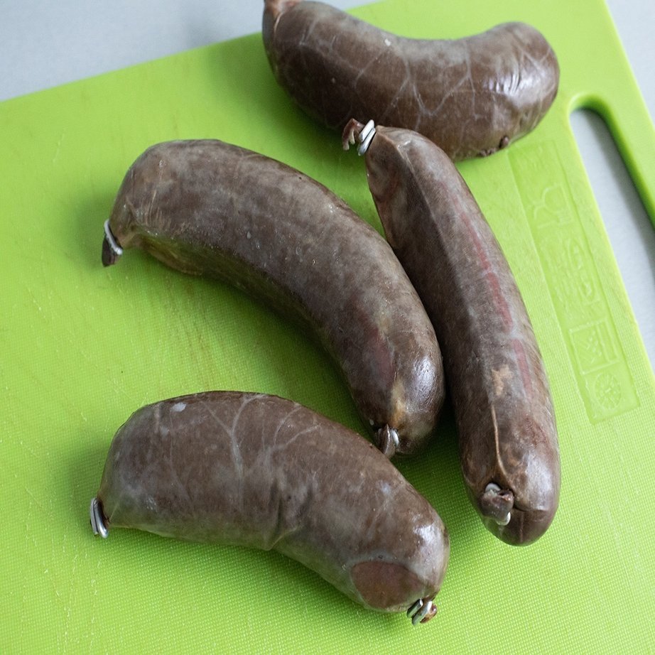 豚の血を加えて作った腸詰です。通常のソーセージより色が濃いですね。