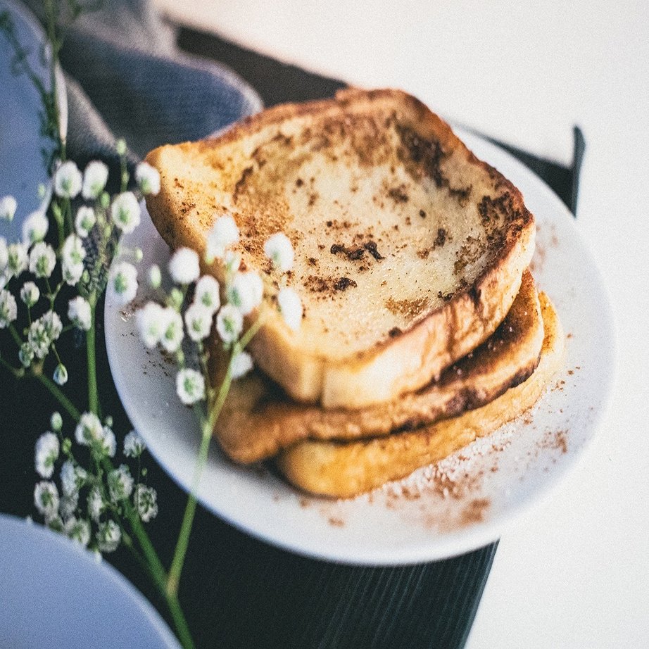 作り方:溶き卵に牛乳を加え、そこに硬くなったパンを浸し、バターを溶かしたフライパンで両面を焼く。仕上げにシナモンと砂糖を振る。