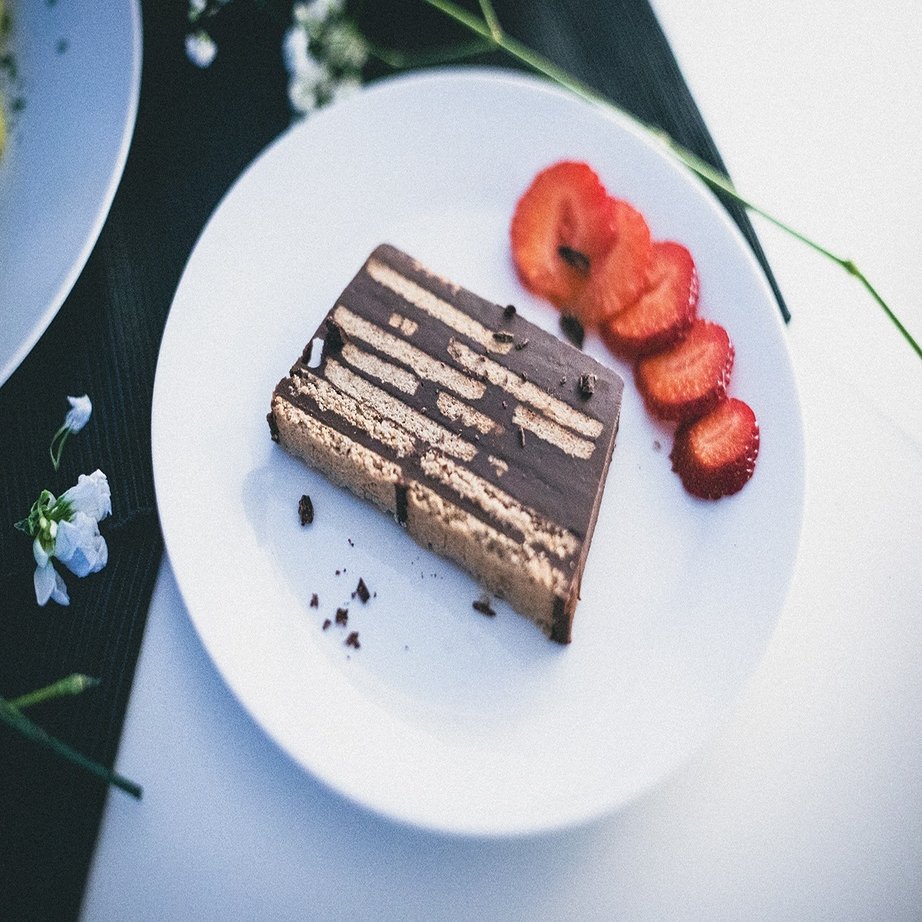 作り方:溶かした製菓用チョコレートにココナッツオイル、生クリームを加えたチョコレートクリームを用意する。ローフ型にビスケットとチョコレートクリームを交互に重ね、冷蔵庫で一晩冷やす。