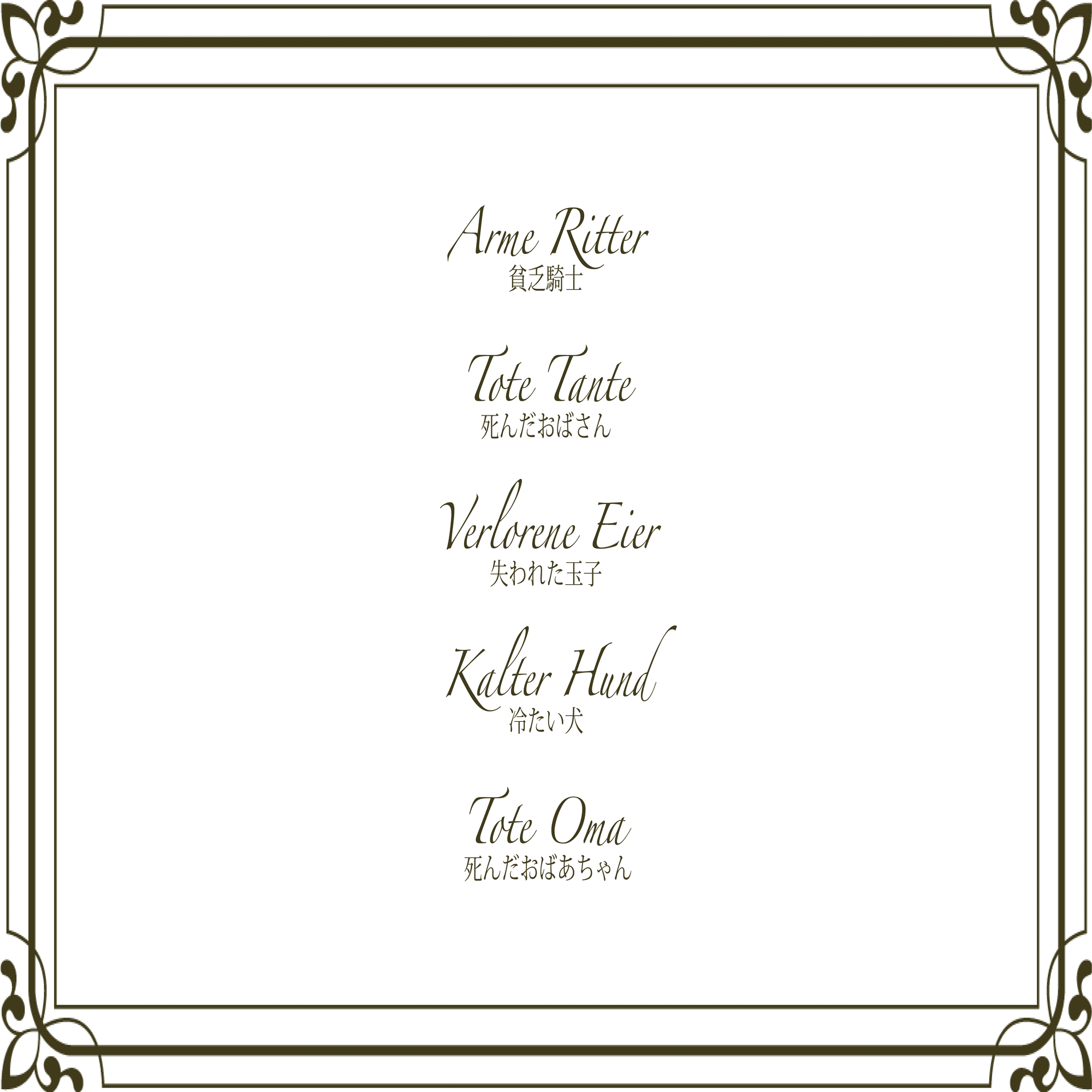 3あまりに面白くて何回も読ませていただきました。シュールなお品書きには思わず笑ってしまいました。他の奇妙なネーミングのドイツ料理もぜひ見てみたいです!😋