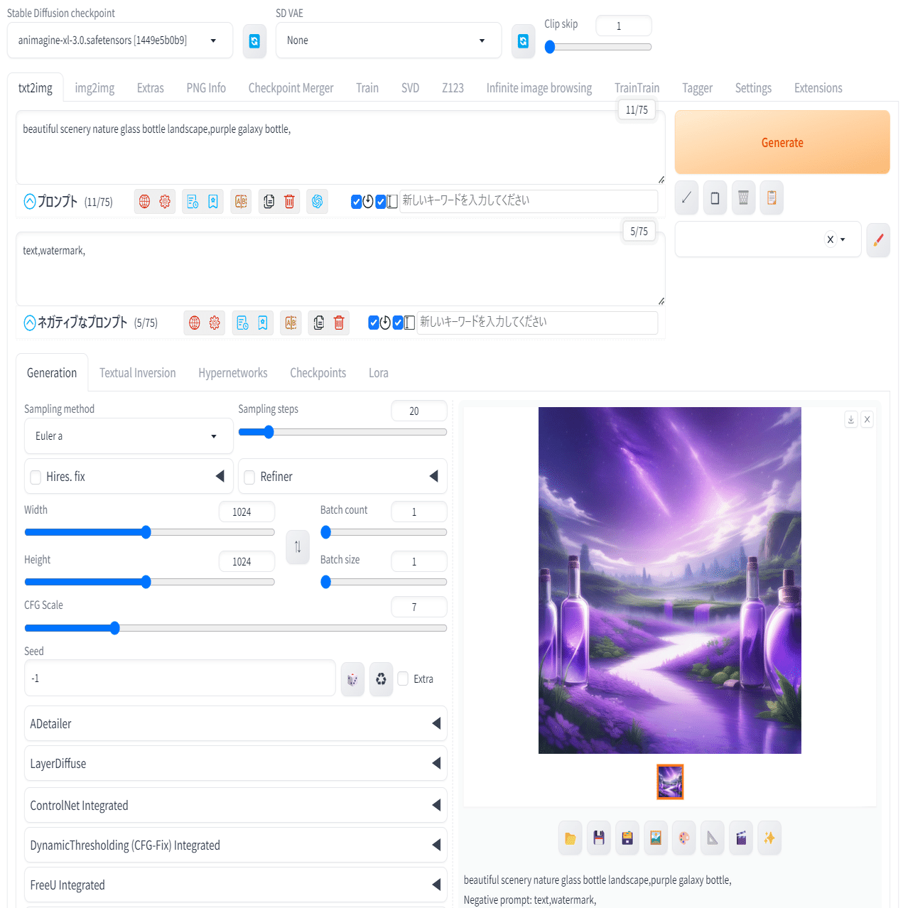 Stable Diffusion WebUI は、画像生成に必要なパラメータを全部見せ、ユーザーがそれらを入力し、機能のオンオフをコントロールして画像を生成する。