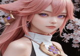 ピンク髪ロングヘアで黄色目でビキニを着ている女の子