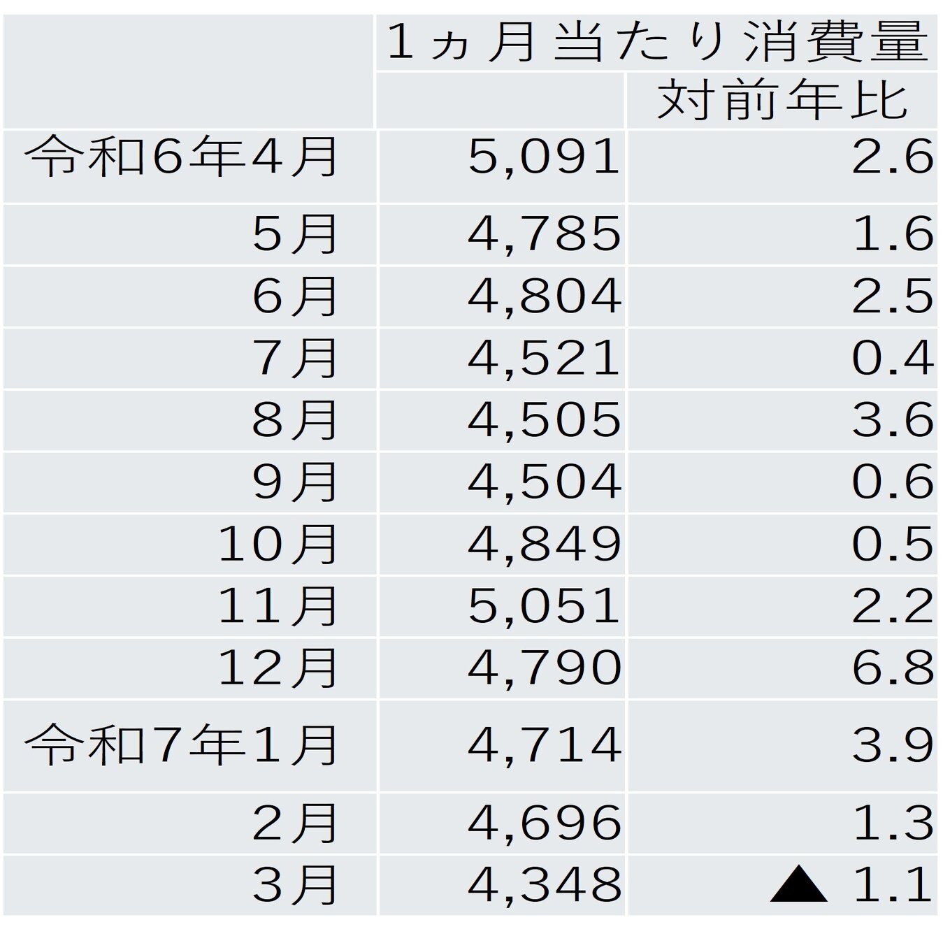 「米穀機構「米の消費動向調査」」を調べると、1カ月当たりのコメの消費量が、2024年度(令和6年度)は、2025年3月を除き、前年度よりも増えている(表1)。2025年3月に減ったのは、さすがに高騰してコメに手が出なくなったからだろう。でも、2024年度はコメの消費が増えていることがここからも読み取れる。