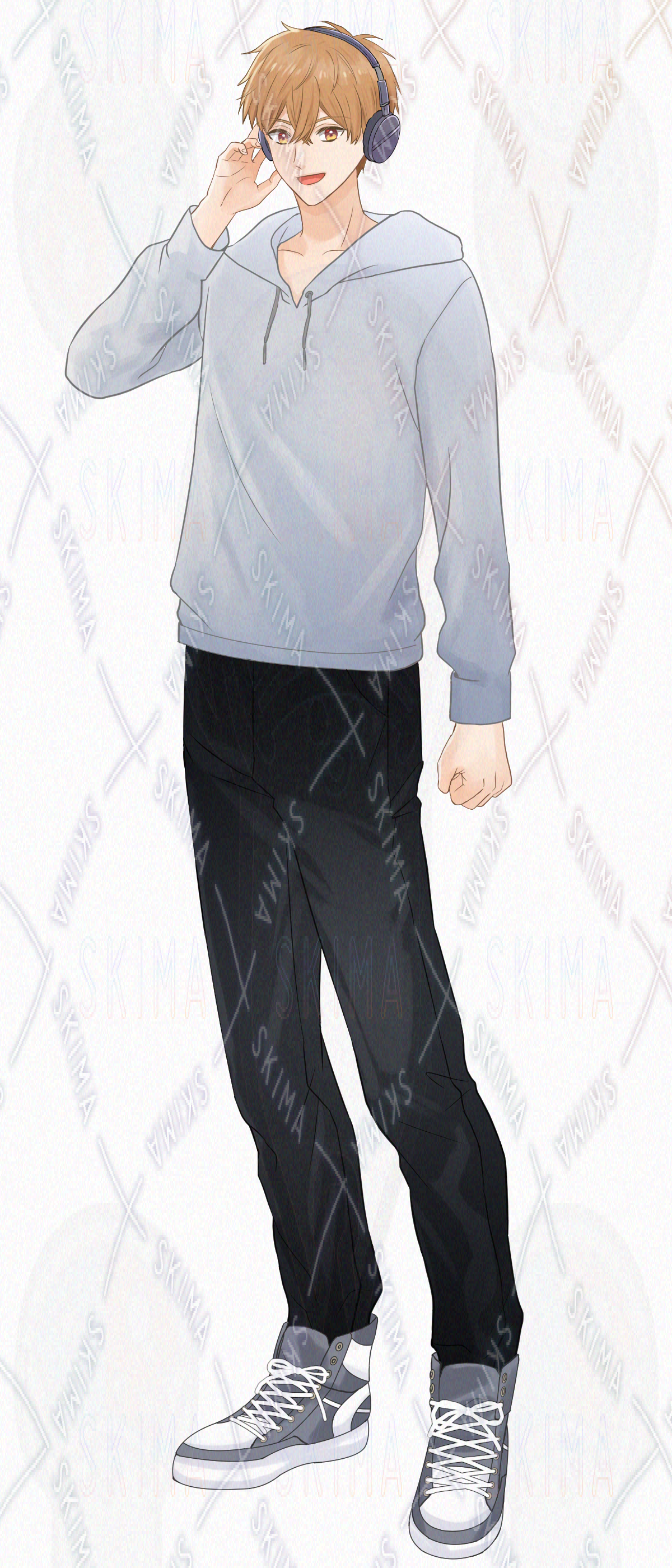 立ち絵、表情差分、男性、ヘッドホン、茶髪、カジュアル、パーカー