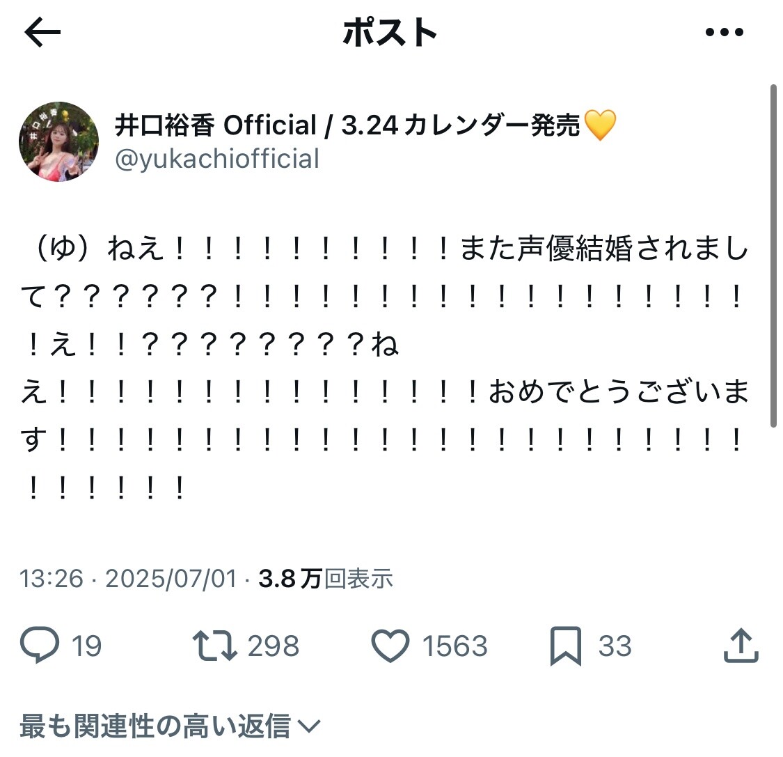 — 井口裕香 Official / 3.24カレンダー発売💛 (@yukachiofficial) July 1, 2025