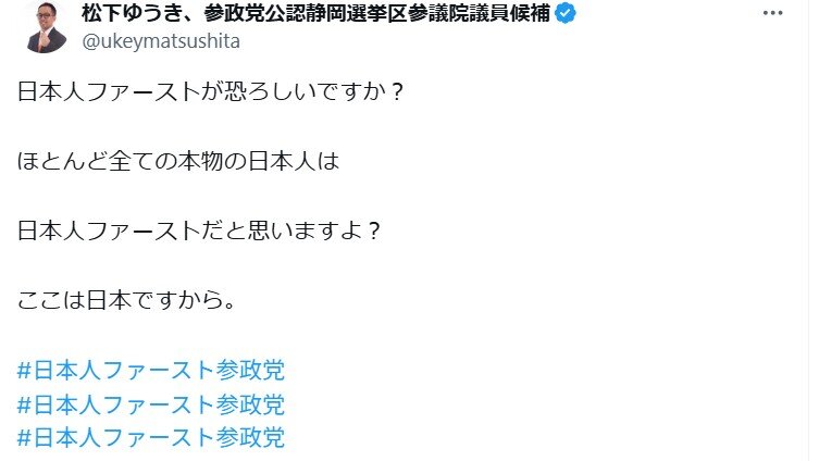 日本人ファースト=参政党支持者ファーストでしかないんや