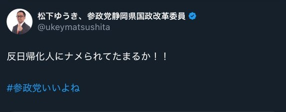なお参政党に反対するやつは日本人じゃない模様