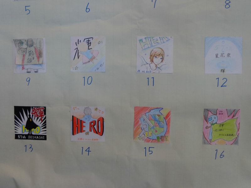 第57回 裾花中学校 星花祭のシンボルマーク候補が出そろいました! 15/07/14 18:23 長崎です。 3年生の授業で制作していた,星花祭(文化祭)シンボルマークから,各クラス2点を選考しました。 そして,今日,全16点のシンボルマーク候補が出そろい,昇降口に貼り出されました。 今年の星花祭テーマは『「輝」~光り輝け 1人1人の英雄魂 』です。 こちらの8点が,私が担当しているクラスの作品。 こちらの8点は,もう一人の美術の先生の方のクラスの作品です。 誰の作品がシンボルマークに選ばれてもおかしくない,力作揃いです! この広告を非表示にする カテゴリー:裾花中 美術の授業の時間です ランキングに参加中。クリックして応援お願いします! 人気ブログランキング にほんブログ村 サービス終了に伴い、10月1日にコメント投稿機能を終了させていただく予定です。 コメントする 最近の「裾花中 美術の授業の時間です」カテゴリー MYジャポニスム ミニ屏風作り 2015年10月30日 古都の美 ~仏像の切り絵~ 文化祭展示に向けて 2015年9月29日 視点を変えた想像画 文化祭展示に向けて 2015年9月26日 文字遊びのデザイン 文化祭展示に向けて 2015年9月14日 第57回 裾花中学校 星花祭のシンボルマーク候補が出そろいました! 2015年7月14日 似顔絵に挑戦! 2015年6月3日 今年もやりました!「心に響く名言集」 2015年5月8日 バックナンバー 2020年 3月 1月 2018年 10月 7月 3月