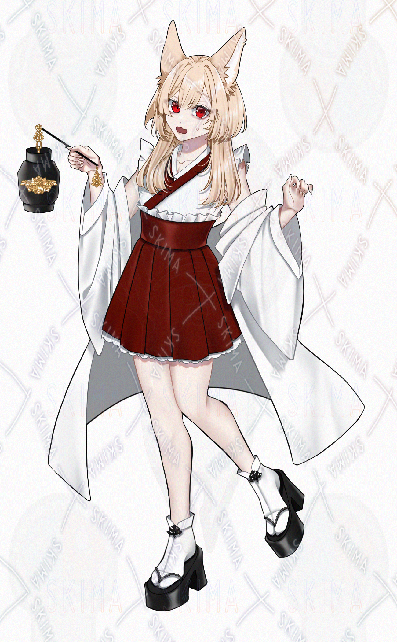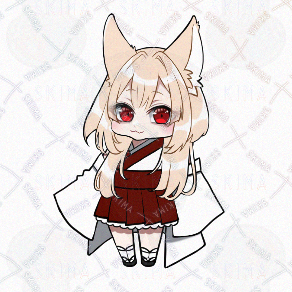 女の子/女性キャラクター/立ち絵/金髪/TRPG/全身/巫女風/提灯/SDキャラ/ミニキャラ/ケモ耳/和風/和服/和洋/赤眼/キツネ/少女