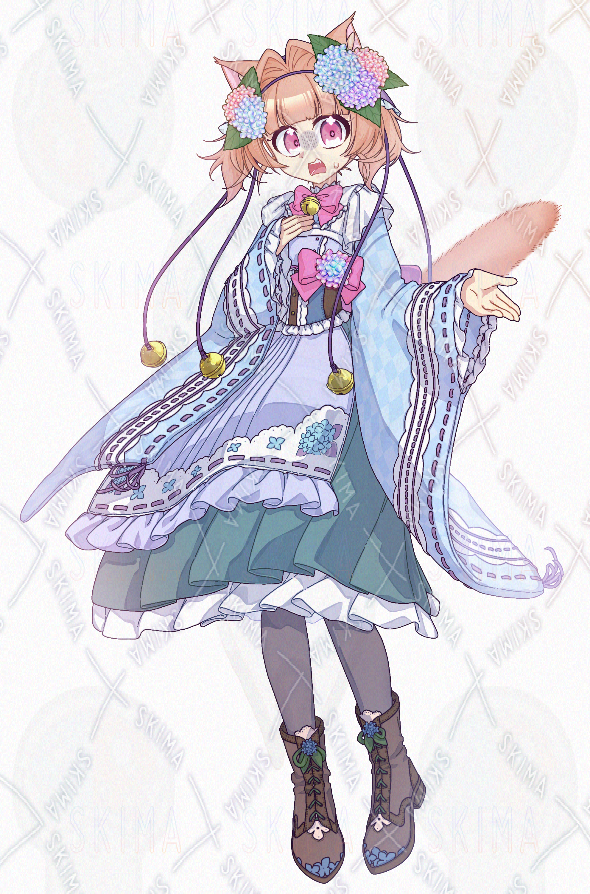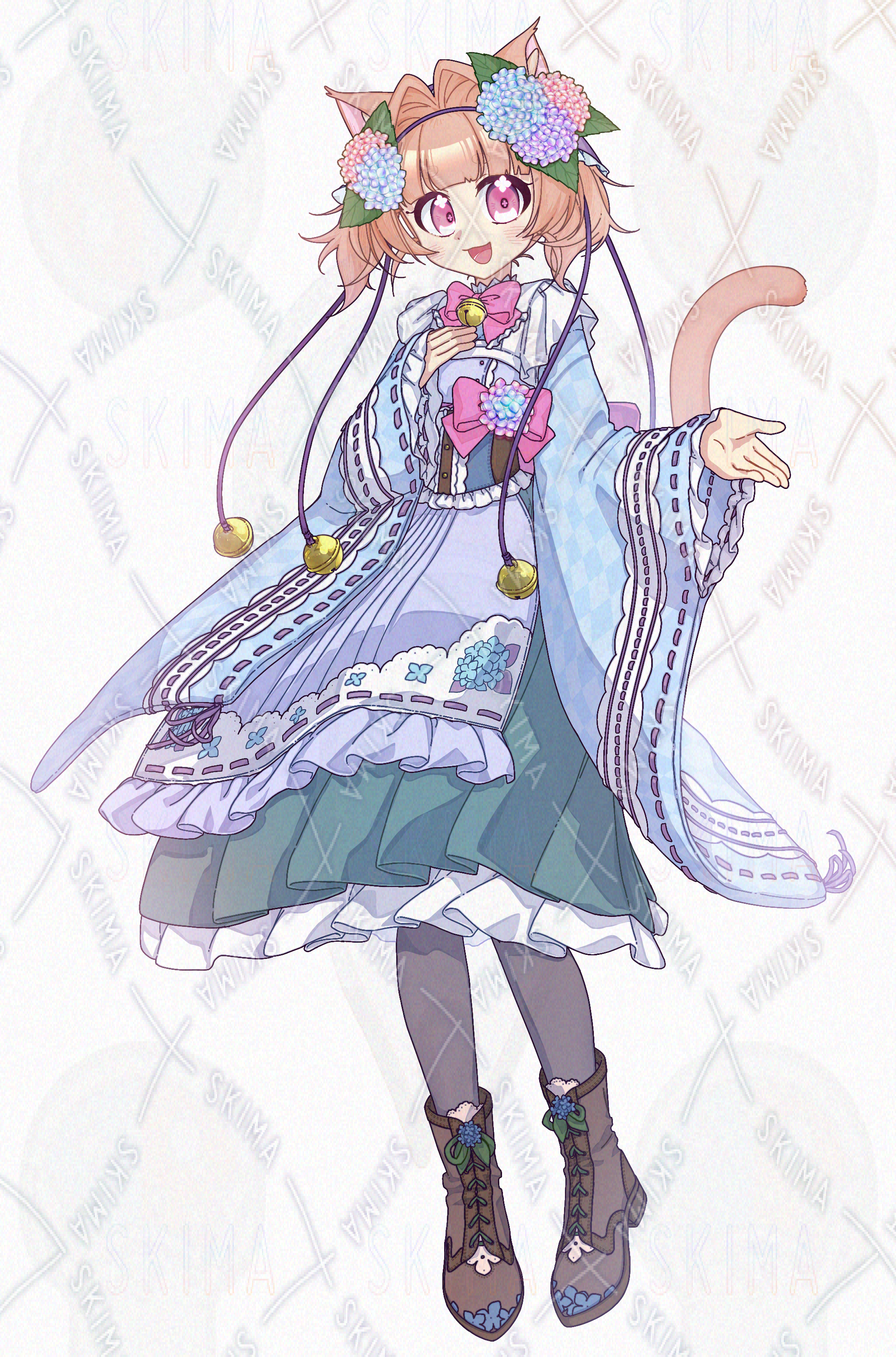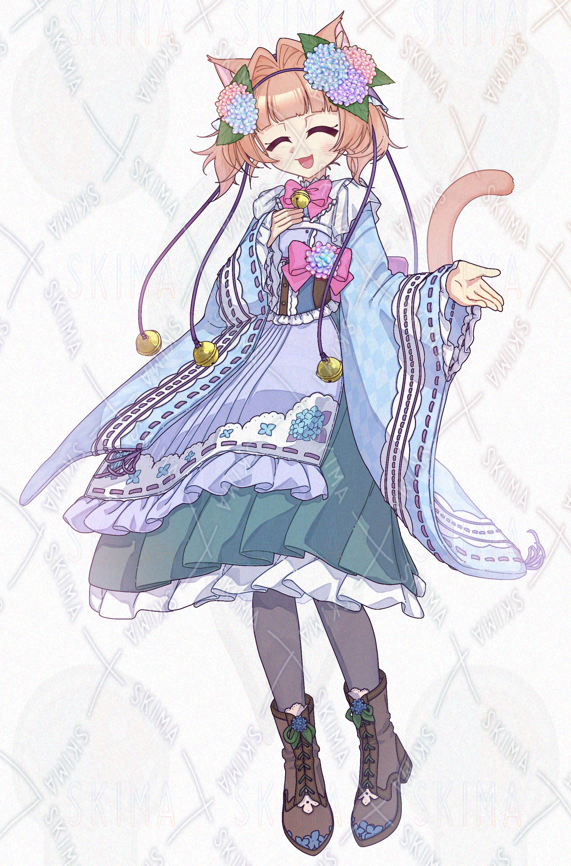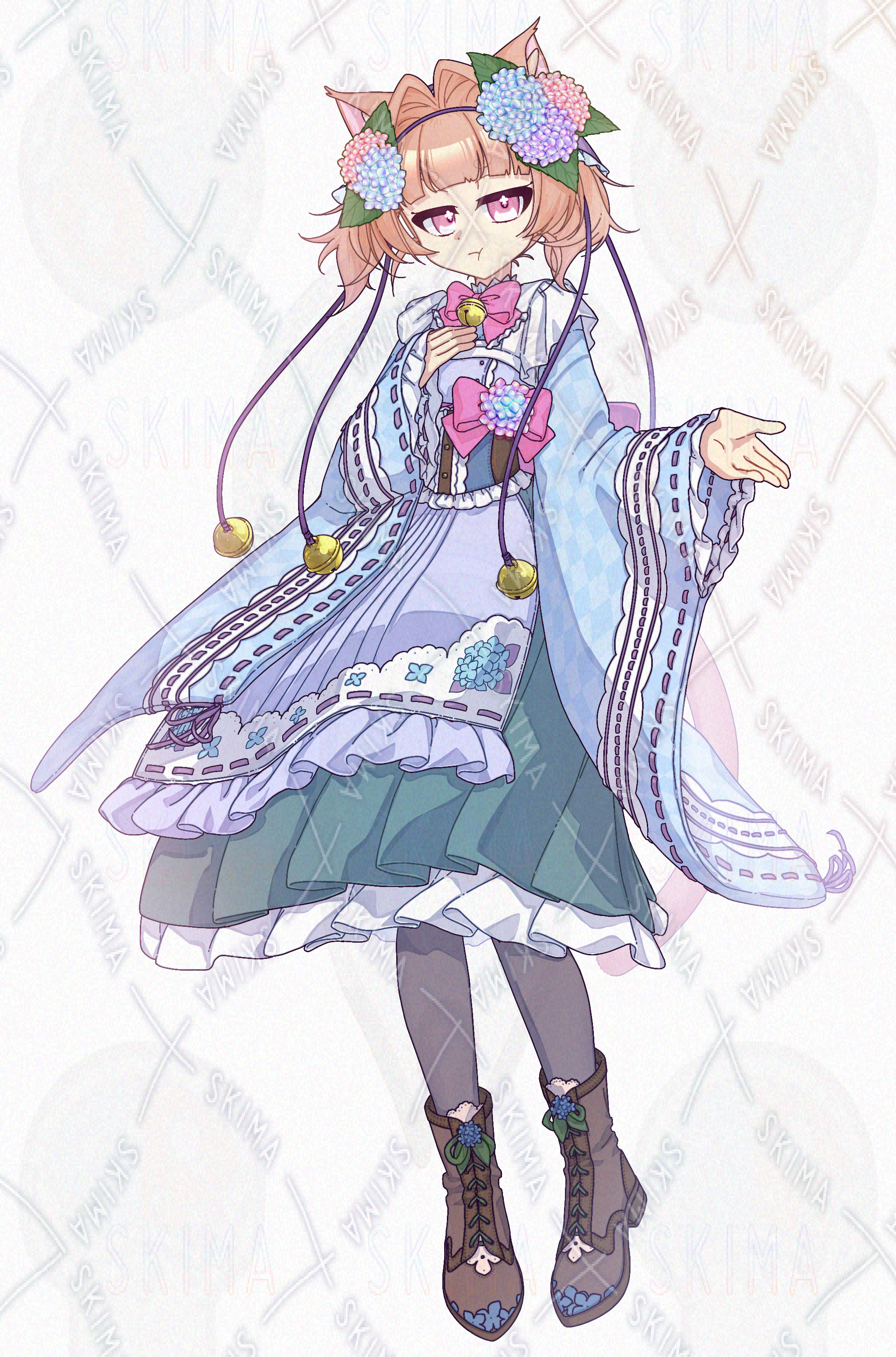 メイド/和服/女の子/花/紫陽花/猫耳/ツインテール/鈴/フリル